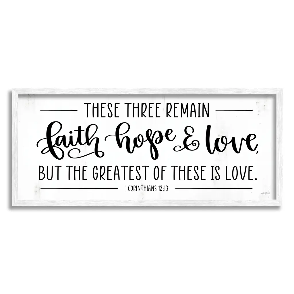 It is time to set up your room with of our fresh new 'Framed Giclee Textured Wall Art' pieces. You may have seen our Wooden or Canvas products, but our framed products are now available in three alluring styles: black, gray farmhouse and white. Our textured artwork will add more depth and dimension to any space. Each piece is mounted with a 1.5 inch thick wood grain frame that is ready to hang! Looking for a statement piece? We have oversized artwork available.Features: Wall Art is Ready to Hang - No Installation or Hardware Needed. For Easy Set Up Lean or Layer Artwork on Shelf or Against Wall.Our giclee prints are carefully mounted on a durable MDF backing, and then perfectly finished in a 1.5 inch thick woodgrain frame. Frame colors include black, gray farmhouse and white. Made In USA.Artwork Relates To: Love; Corinthians; ReligiousDesign by Lettered and Lined