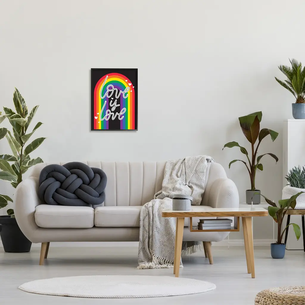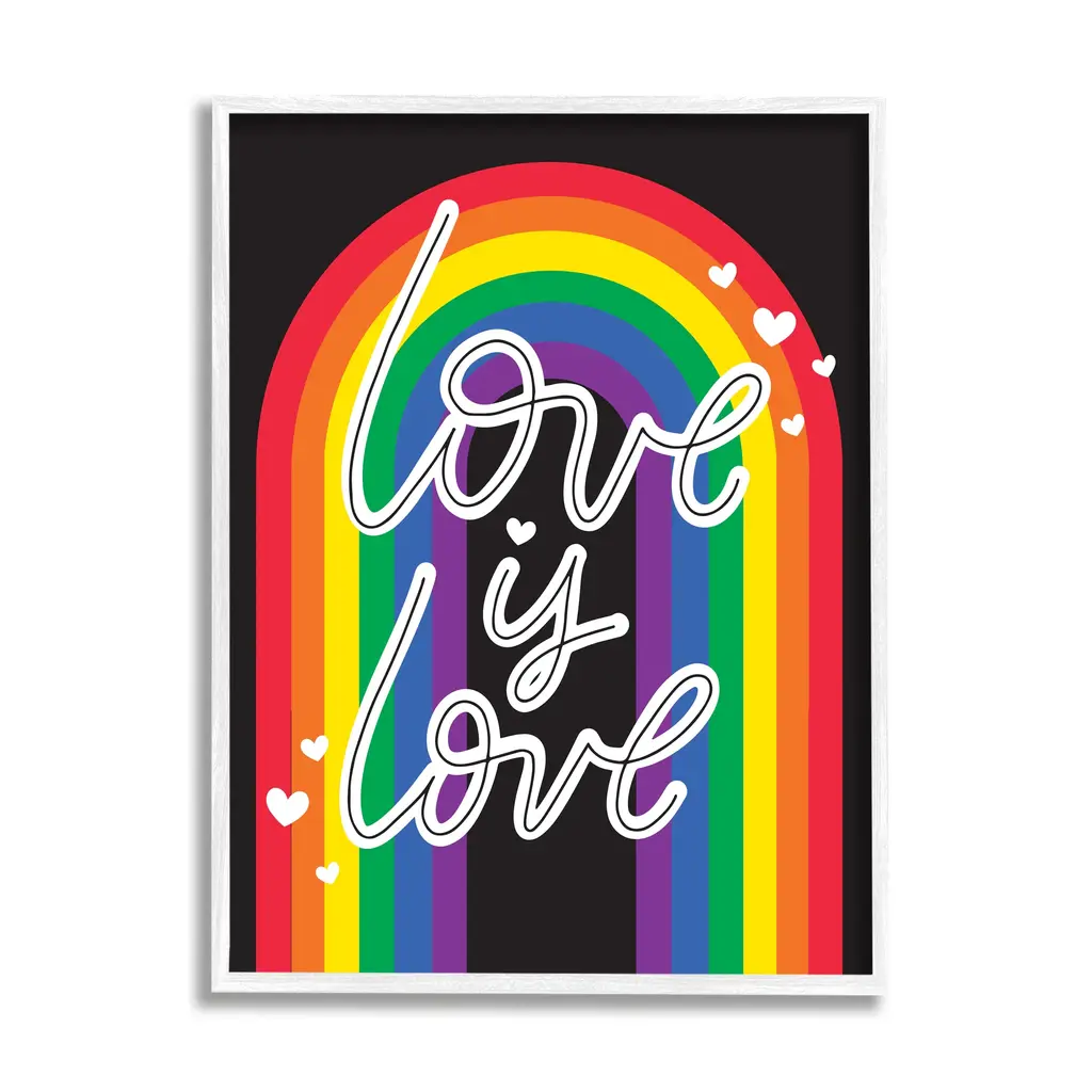 Add dimension to any room with our textured Framed Giclee Artwork. Our framed artwork is securely mounted into a 1.5-inch thick wood grain frame and ready to hang. Frames are available in three alluring styles: black, gray farmhouse and white. In addition, you should check out our oversized options if you want a statement piece. Stupell Wall Art is made in the USA.Features: Dimensions: 11 x 1.5 x 14 FramedFramed Giclee Sizes Include Standard: 11 x 1.5 x 14 Large: 16 x 1.5 x 20 Oversized: 24 x 1.5 x 30Wall Art is Ready to Hang - No Installation or Hardware Needed. For Easy Set Up Lean or Layer Artwork on Shelf or Against Wall.Our giclée prints are carefully mounted on a durable MDF backing, and then perfectly finished in a 1.5 inch thick woodgrain frame. Mounted frame colors include black, gray farmhouse and white. Made In USA.Artwork Relates To: Love Is Love, Heart, Rainbow, Pride, LGBTQDesign by Angela Nickeas