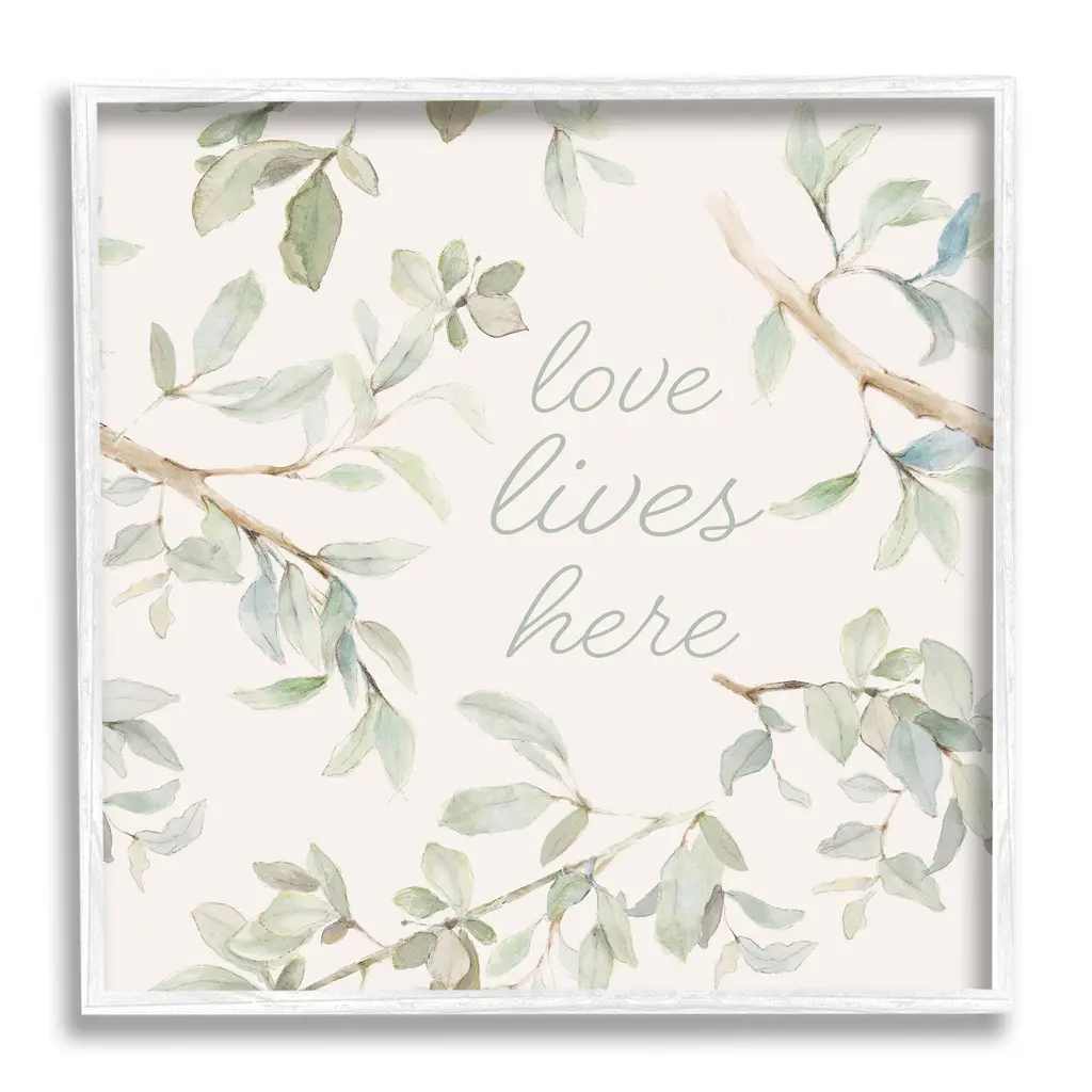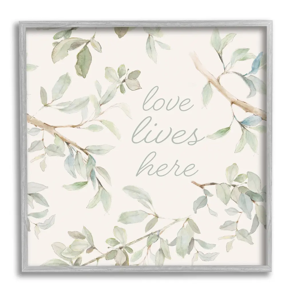 Stupell Love Lives Here Cursive Botanical Branches Phrase Framed Wall Art, Design By Lanie Loreth - Off-White - 24 X 24 - Grey