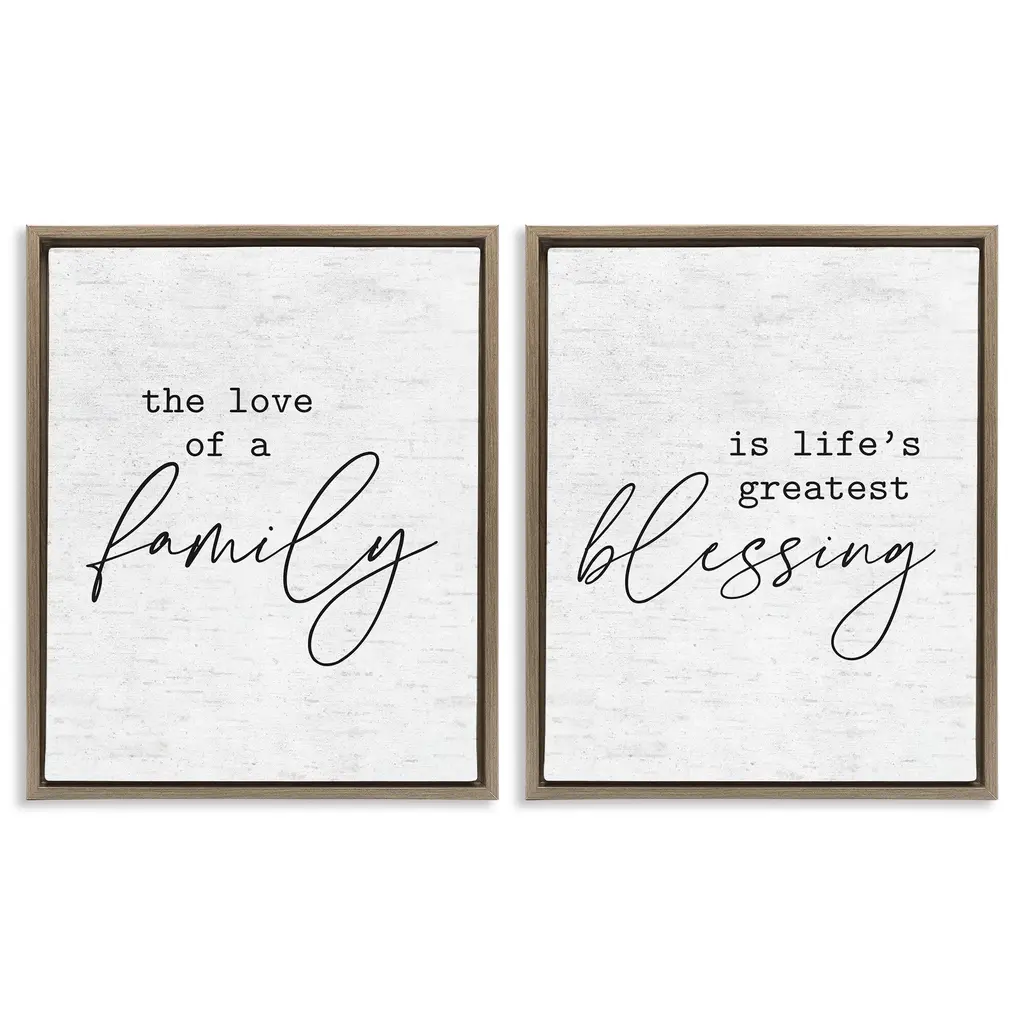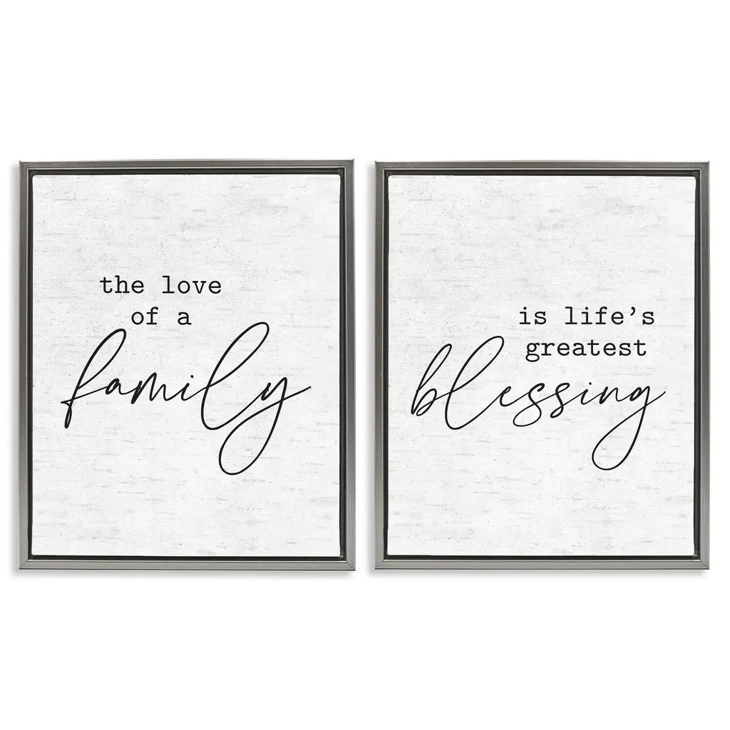 Stupell Love Of Family Is Life's Greatest Blessing Minimal Quote, 2Pc Multi Piece Framed Wall Art Set - 16 X 20 - Grey