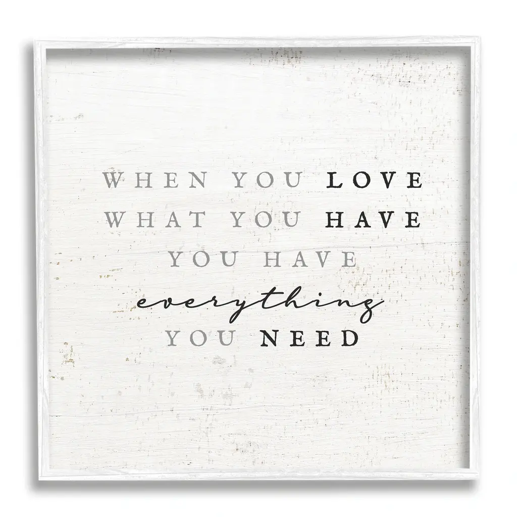 Stupell Love What You Have Reassuring Rustic Quote Framed Wall Art, Design By Daphne Polselli - 12 X 12 - Grey