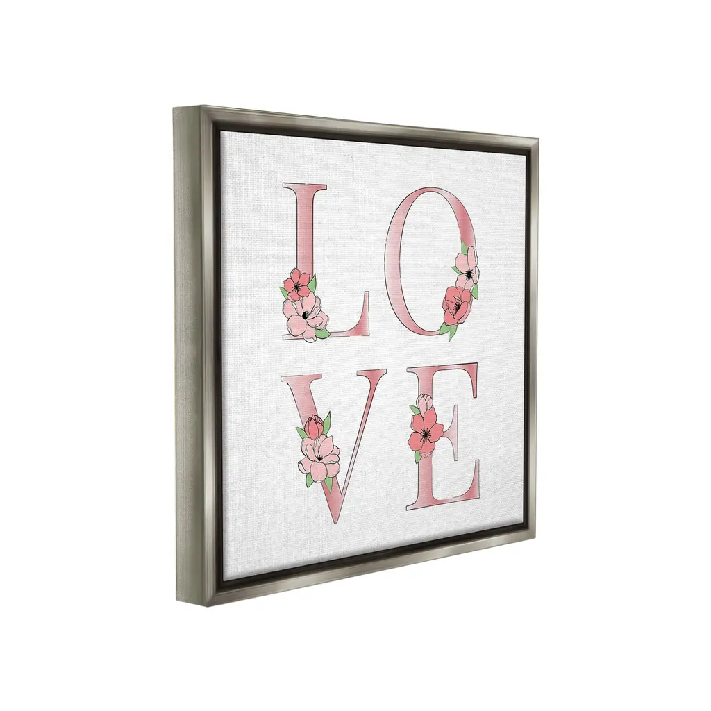Stupell Love With Floral Blooms Framed Floater Canvas Wall Art Design By Martina Pavlova - 25 X 25 - Grey