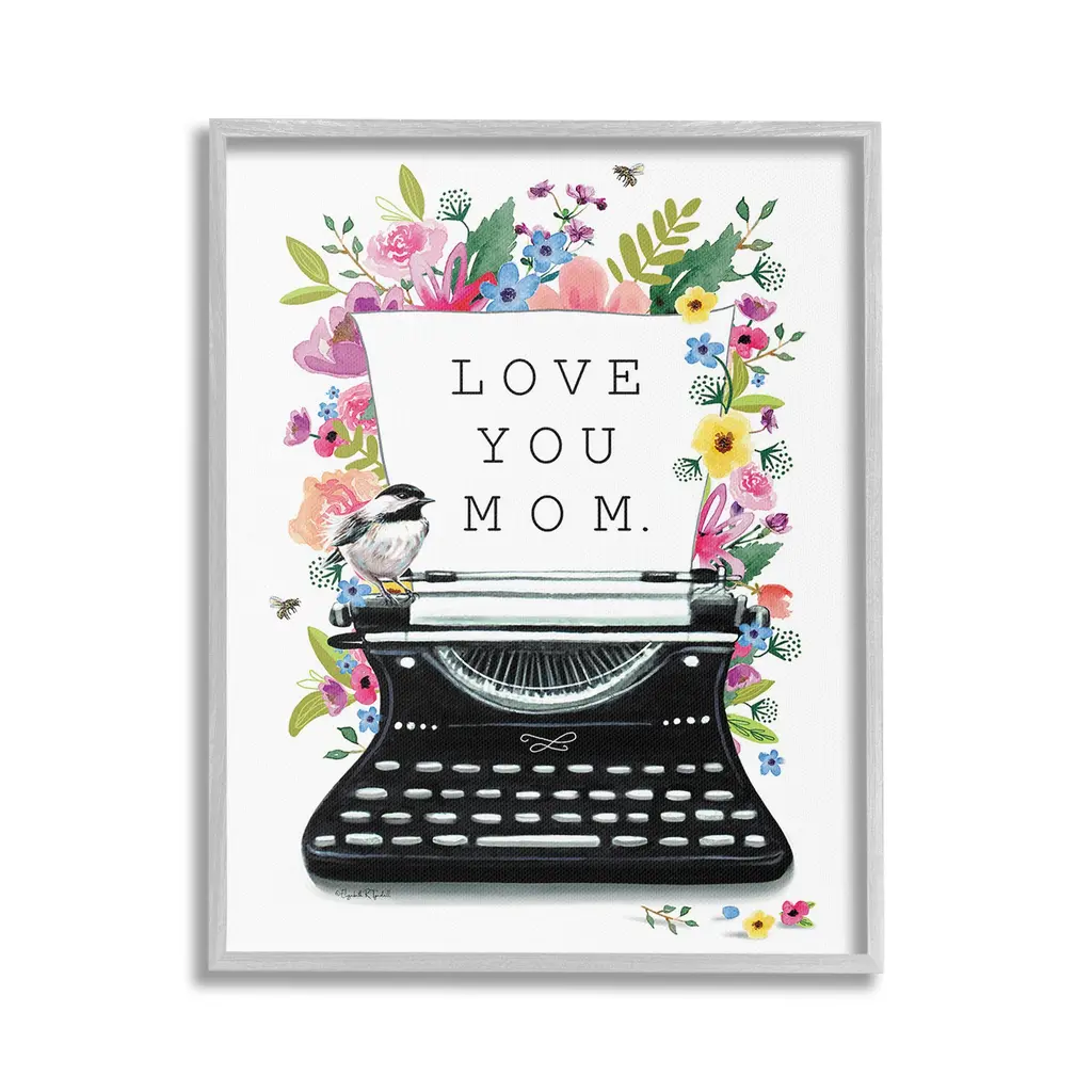 Stupell Love You Mom Typewriter Framed Giclee Art Design By Elizabeth Tyndall - 24 X 30 - Grey
