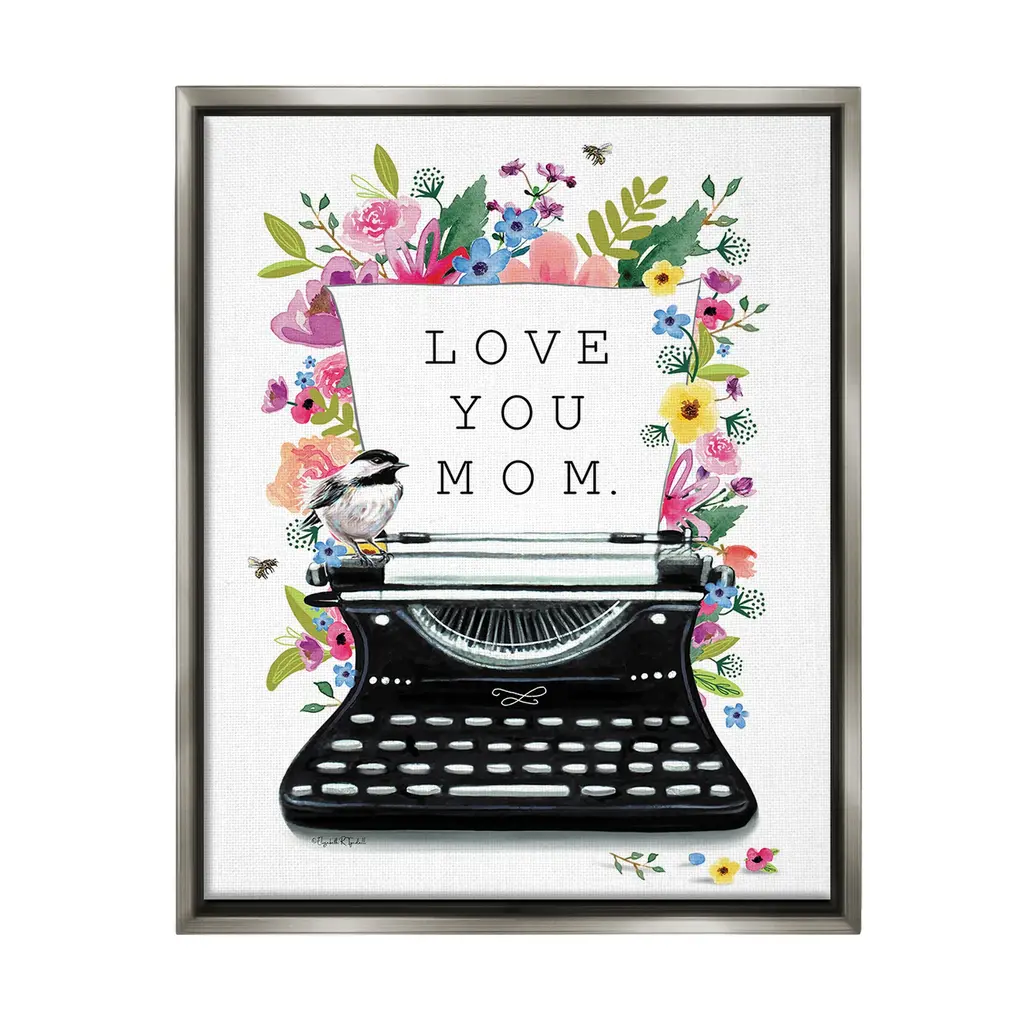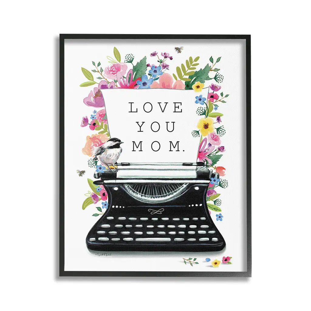 Add dimension to any room with our textured Framed Giclee Artwork. Our framed artwork is securely mounted into a 1.5-inch thick wood grain frame and ready to hang. Frames are available in three alluring styles: black, gray farmhouse and white. In addition, you should check out our oversized options if you want a statement piece. Stupell Wall Art is made in the USA.Features: Dimensions: 11 x 1.5 x 14 FramedFramed Giclee Products are available in the sizes 11"x14", 16"x20" or 24"x30". All Framed Giclee Products have a 1.5" Depth. Wall Art is Ready to Hang with Hardware Free Hanging. No installation required. For Easy Set Up Lean or Layer Artwork on Shelf or Against Wall.Our giclée prints are carefully mounted on a durable MDF backing, and then perfectly finished in a 1.5 inch thick woodgrain frame. Mounted frame colors include black, gray farmhouse and white. Made In USA.Artwork Relates To: Floral, Flower, Bouquet, Phrase, Mother's Day, Typewriter, Vintage, Bird, Animal, Love You MomDesign by Elizabeth Tyndall