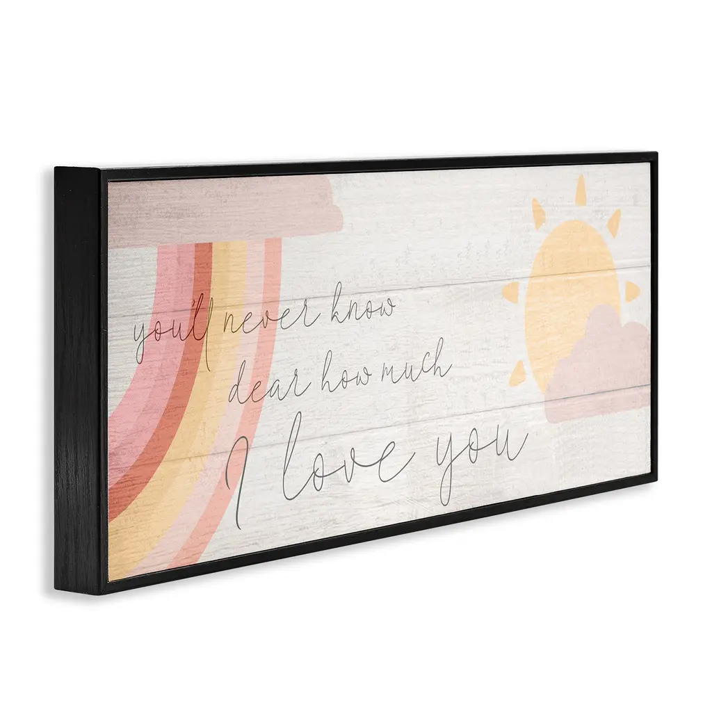 Add dimension to any room with our textured Framed Giclee Artwork. Our framed artwork is securely mounted into a 1.5-inch thick wood grain frame and ready to hang. Frames are available in three alluring styles: black, gray farmhouse and white. In addition, you should check out our oversized options if you want a statement piece. Stupell Wall Art is made in the USA.Features: Dimensions: 24 x 1.5 x 10 FramedFramed Giclee Product Sizes include 24"x10" and 30"x13". All Framed Giclee products have a 1.5" Depth.Wall Art is Ready to Hang with Hardware Free Hanging. No installation required. For Easy Set Up Lean or Layer Artwork on Shelf or Against Wall.Our giclée prints are carefully mounted on a durable MDF backing, and then perfectly finished in a 1.5 inch thick woodgrain frame. Mounted frame colors include black, gray farmhouse and white. Made In USA.Artwork Relates To: Kids, Nature, Song, Rainbow, Sun, Love, FamilyDesign by Daphne Polselli
