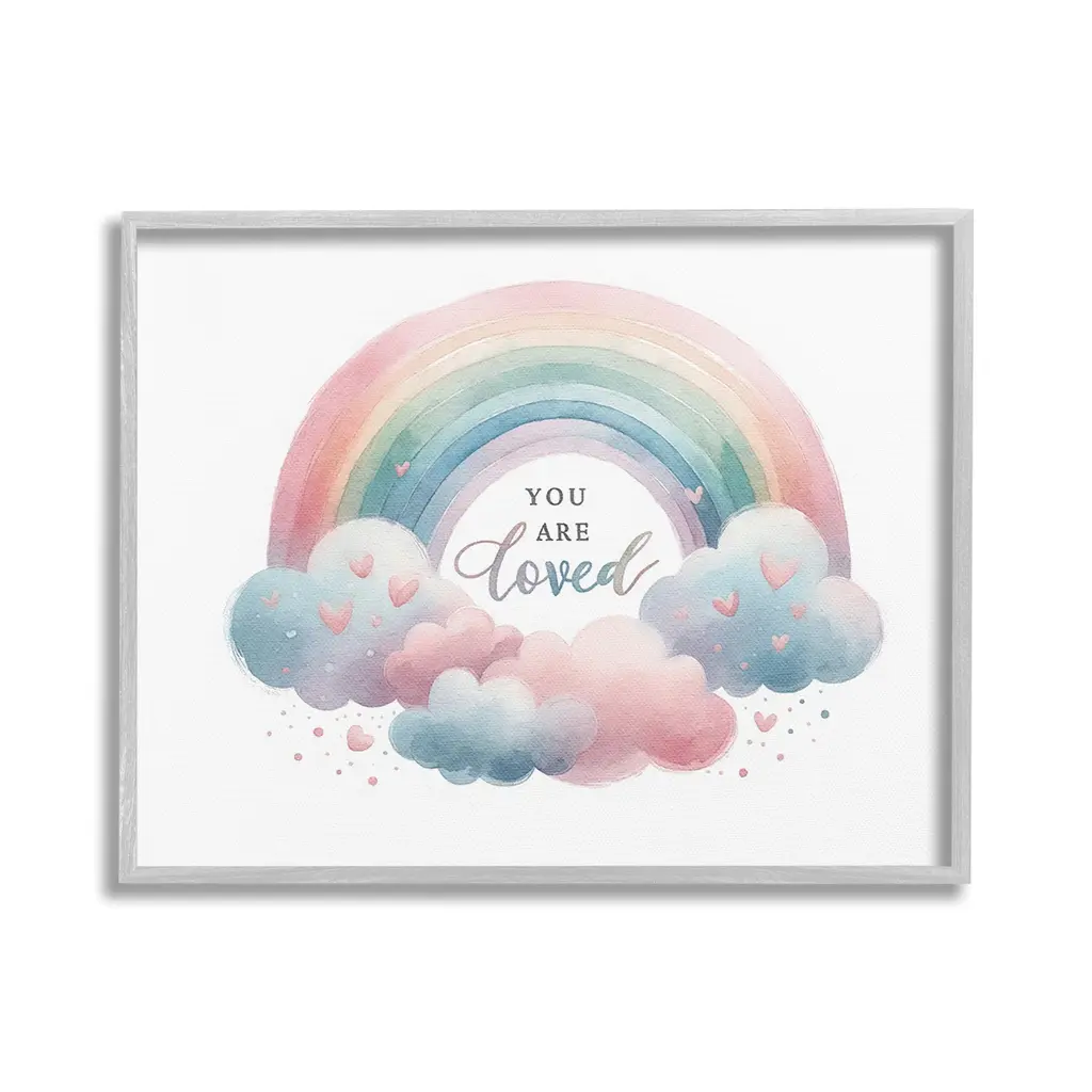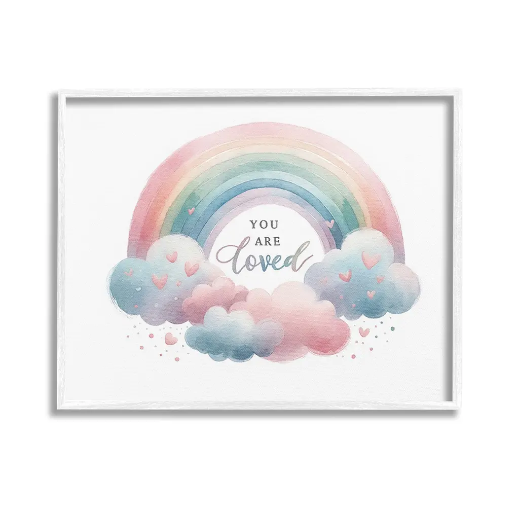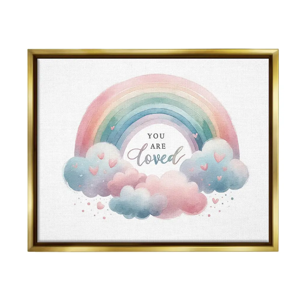 Elevate your home or office to the next level with Stupell Framed Floating Canvas Wall Art. Our premium hand-stretched canvas is mounted securely into a sturdy lightweight frame. The museum-style gap between the wrapped canvas and the box frame gives the illusion of floating artwork. Stupell Wall Art is made in the USA.Features: Dimensions: 21 x 1.7 x 17 Frame, 20 x 1.5 x 16 Canvas ArtFloating Frame Canvas Products are available in sizes 21"x17" and 31"x25". All Floating Frame Canvas Products have a 1.7" Depth.Wall Art is Ready to Hang with Hardware Free Hanging. No Installation required. For Easy Set Up Lean or Layer Artwork on Shelf or Against Wall. Artwork is Permently Fixed into the Frame.Our elevated 1.7" Thick Floating Frame is the perfect complement to our canvas style Wall Art. We use only the highest quality inks in house with industry leading printing solutions. Canvas is hand stretched over a durable wood foundation and then mounted securly into a Modern Box Frame. Made in the USA.Artwork Relates To: Landscape, Nature, Cloud, Rainbow, Pastel, Inspirational, Phrase, Heart, You Are LovedDesign by Amanda Greenwood