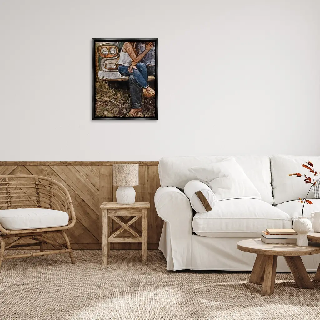 Elevate your home or office to the next level with Stupell Framed Floating Canvas Wall Art. Our premium hand-stretched canvas is mounted securely into a sturdy lightweight frame. The museum-style gap between the wrapped canvas and the box frame gives the illusion of floating artwork. Stupell Wall Art is made in the USA.Features: Dimensions: 17 x 1.7 x 21 Frame, 16 x 1.5 x 20 Canvas ArtFloating Frame Canvas Products are available in sizes 17"x21" and 25"x31". All Floating Frame Canvas Products have a 1.7" Depth.Wall Art is Ready to Hang with Hardware Free Hanging. No Installation required. For Easy Set Up Lean or Layer Artwork on Shelf or Against Wall. Artwork is Permently Fixed into the Frame.Our elevated 1.7" Thick Floating Frame is the perfect complement to our canvas style Wall Art. We use only the highest quality inks in house with industry leading printing solutions. Canvas is hand stretched over a durable wood foundation and then mounted securly into a Modern Box Frame. Made in the USA.Artwork Relates To: Person, Car, Vehicle, Couple, Nature, Rustic, Country, FarmhouseDesign by Jesse Keith