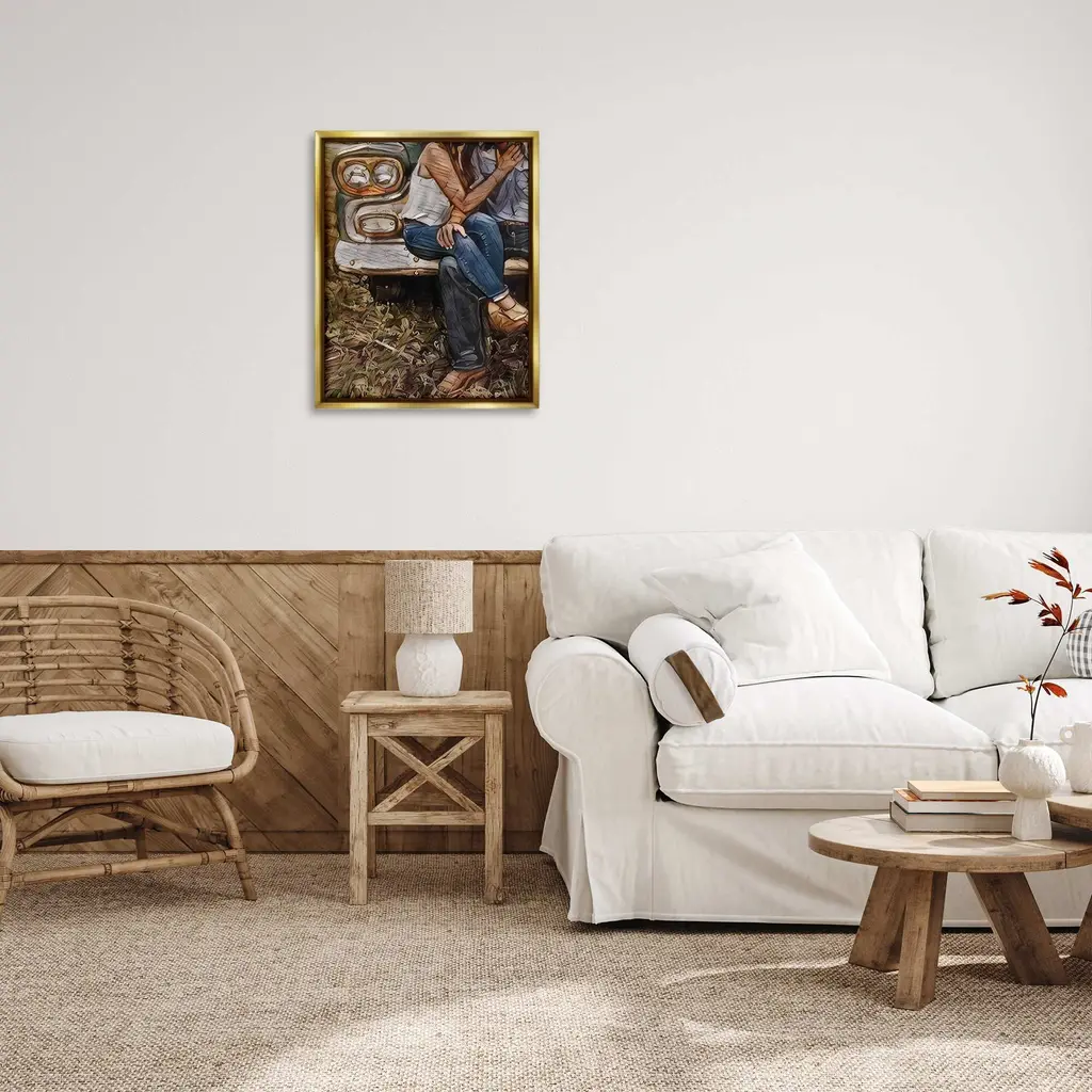 Elevate your home or office to the next level with Stupell Framed Floating Canvas Wall Art. Our premium hand-stretched canvas is mounted securely into a sturdy lightweight frame. The museum-style gap between the wrapped canvas and the box frame gives the illusion of floating artwork. Stupell Wall Art is made in the USA.Features: Dimensions: 17 x 1.7 x 21 Frame, 16 x 1.5 x 20 Canvas ArtFloating Frame Canvas Products are available in sizes 17"x21" and 25"x31". All Floating Frame Canvas Products have a 1.7" Depth.Wall Art is Ready to Hang with Hardware Free Hanging. No Installation required. For Easy Set Up Lean or Layer Artwork on Shelf or Against Wall. Artwork is Permently Fixed into the Frame.Our elevated 1.7" Thick Floating Frame is the perfect complement to our canvas style Wall Art. We use only the highest quality inks in house with industry leading printing solutions. Canvas is hand stretched over a durable wood foundation and then mounted securly into a Modern Box Frame. Made in the USA.Artwork Relates To: Person, Car, Vehicle, Couple, Nature, Rustic, Country, FarmhouseDesign by Jesse Keith