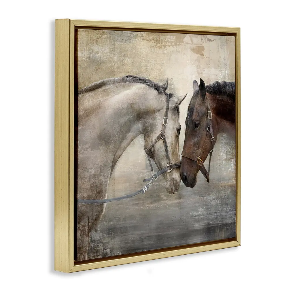 Stupell Loving Horse Couple Framed Floater Canvas Wall Art Design By Main Line Studio - 18 X 18 - Gold