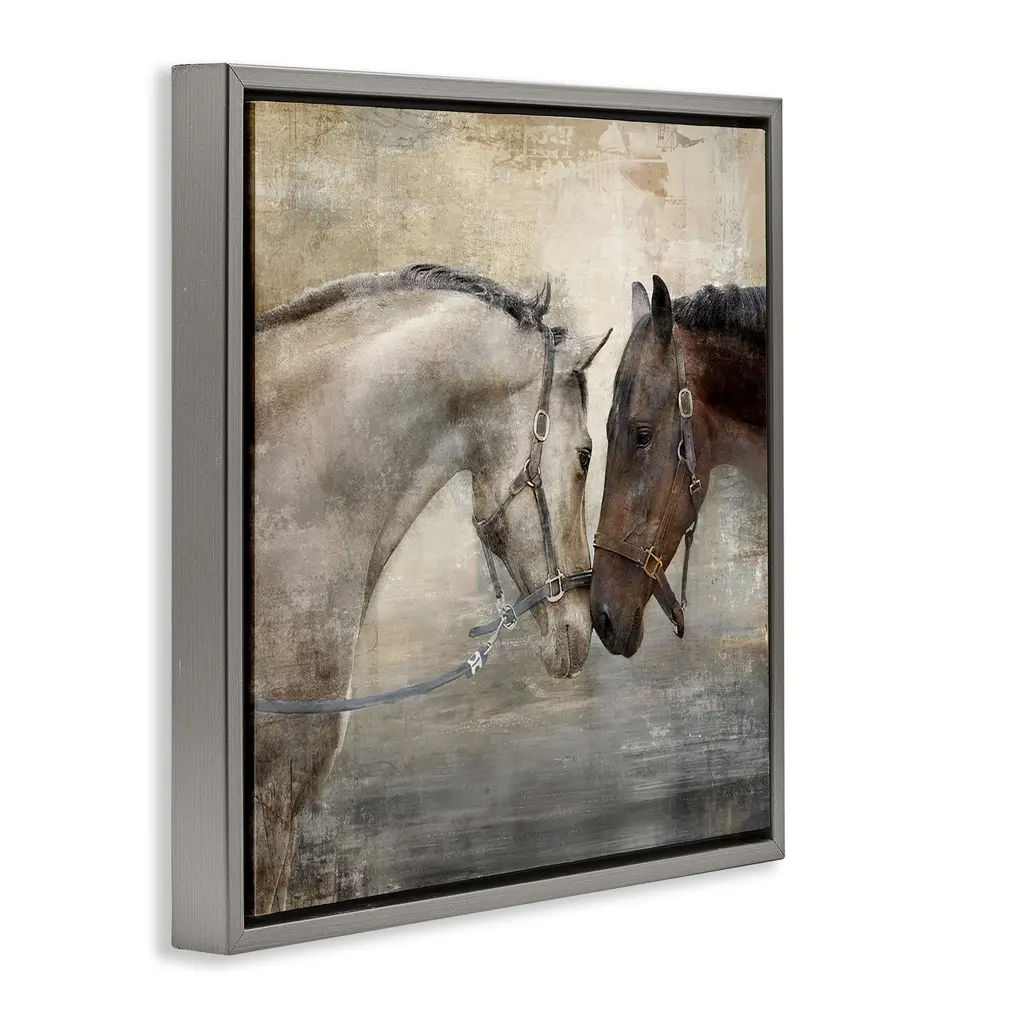 Stupell Loving Horse Couple Framed Floater Canvas Wall Art Design By Main Line Studio - 18 X 18 - Grey