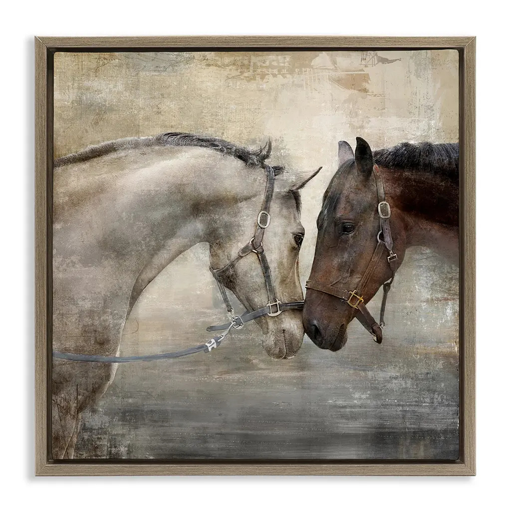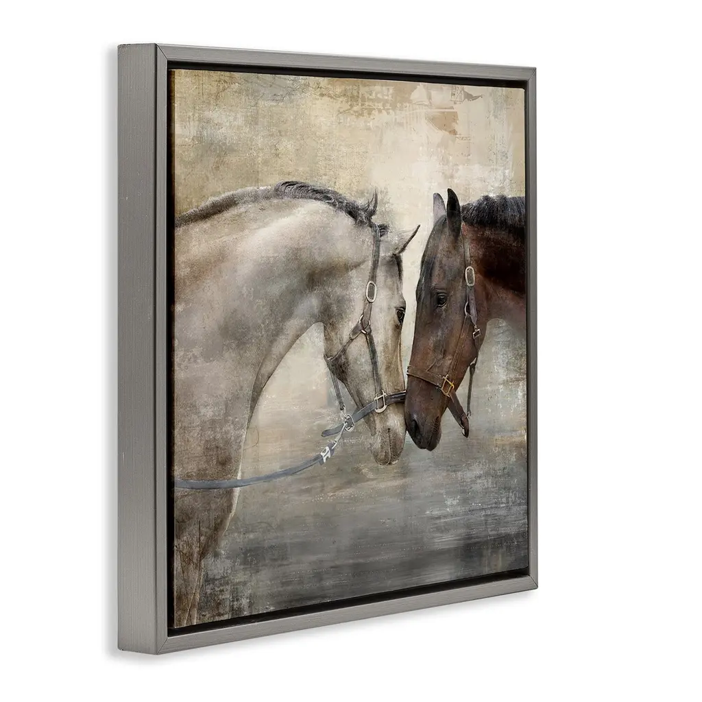 Stupell Loving Horse Couple Framed Floater Canvas Wall Art Design By Main Line Studio - 25 X 25 - Grey