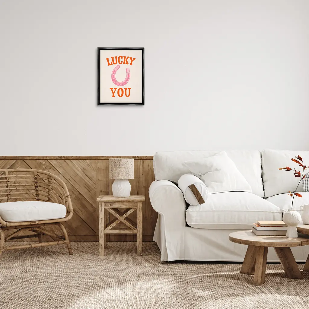 Stupell Lucky You Horseshoe Framed Floater Canvas Wall Art Design By Victoria Barnes - 17 X 21 - Black
