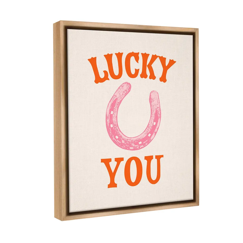 Stupell Lucky You Horseshoe Framed Floater Canvas Wall Art Design By Victoria Barnes - 25 X 31 - Brown