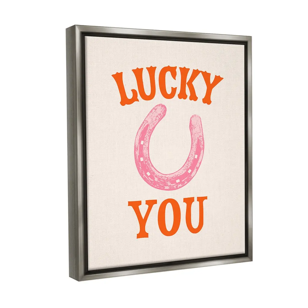Stupell Lucky You Horseshoe Framed Floater Canvas Wall Art Design By Victoria Barnes - 25 X 31 - Grey