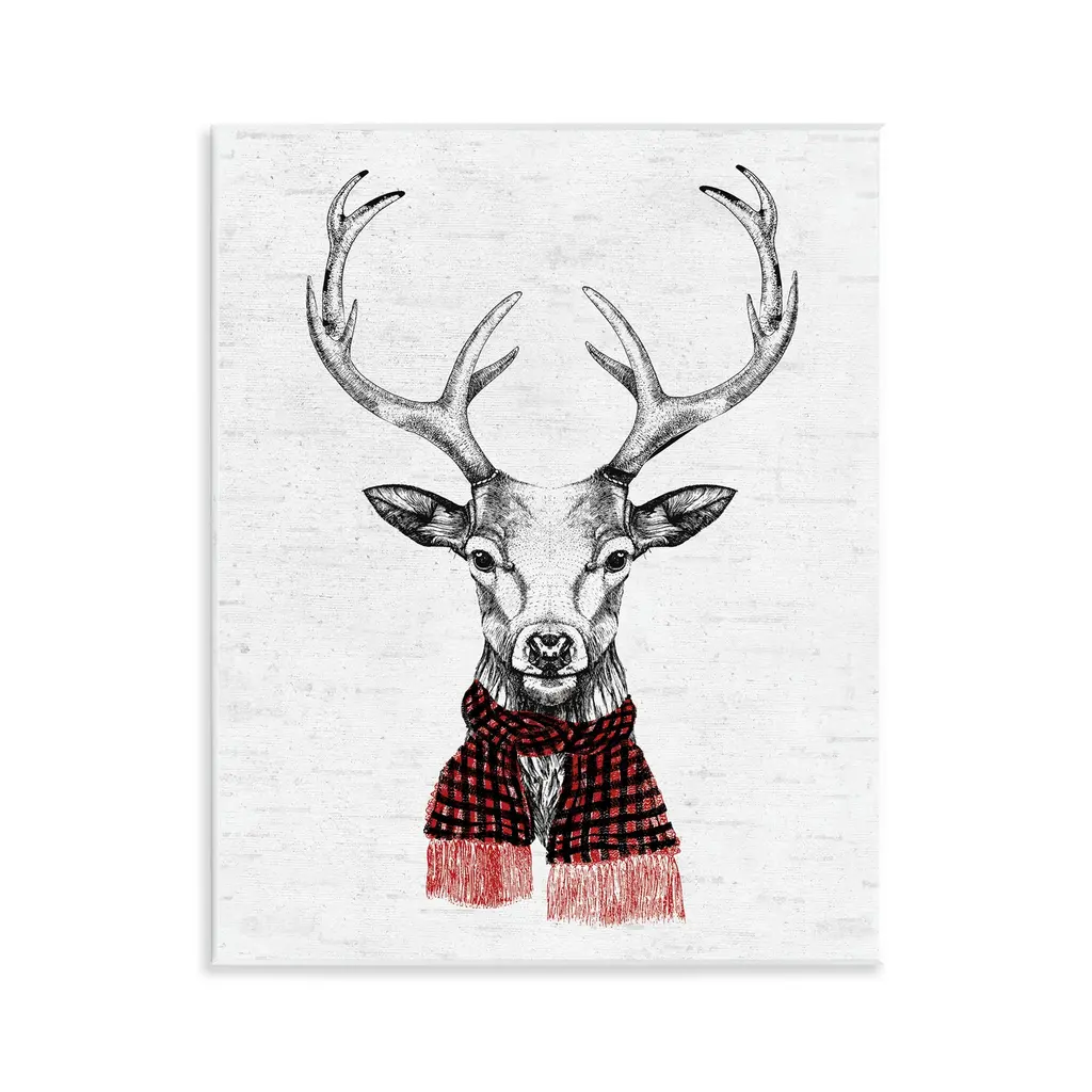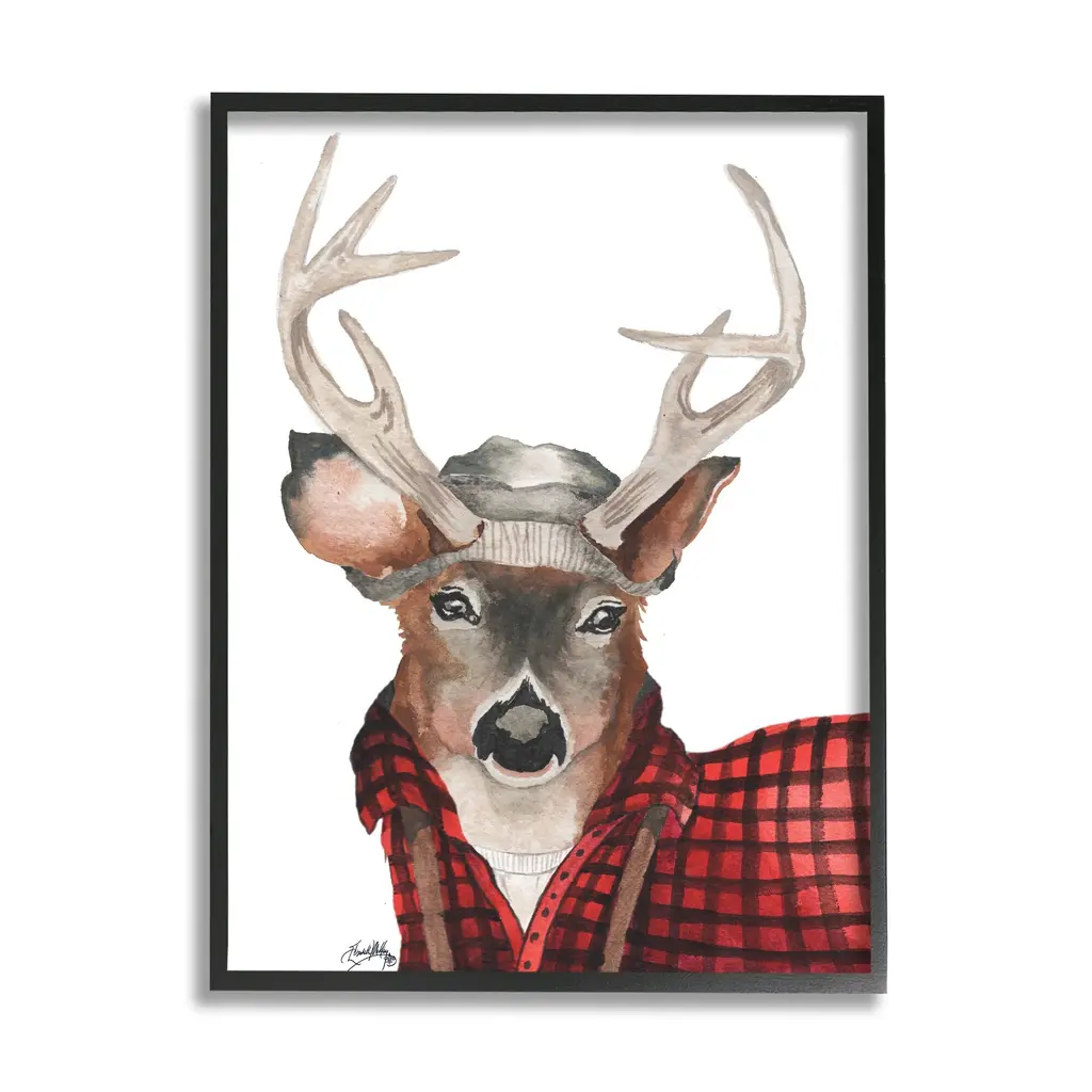 Stupell Lumberjack Buck Deer With Beanie Red Plaid Framed Wall Art - 24 X 30 - Grey