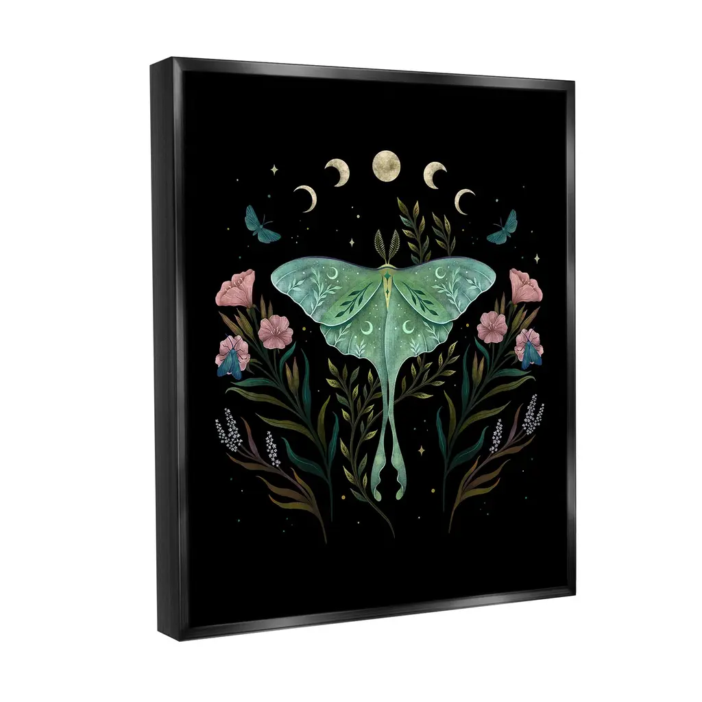 Elevate your home or office to the next level with Stupell Framed Floating Canvas Wall Art. Our premium hand-stretched canvas is mounted securely into a sturdy lightweight frame. The museum-style gap between the wrapped canvas and the box frame gives the illusion of floating artwork. Stupell Wall Art is made in the USA.Features: Dimensions: 17 x 1.7 x 21 Frame, 16 x 1.5 x 20 Canvas ArtFloating Frame Canvas Products are available in sizes 17"x21" and 25"x31". All Floating Frame Canvas Products have a 1.7" Depth.Wall Art is Ready to Hang with Hardware Free Hanging. No Installation required. For Easy Set Up Lean or Layer Artwork on Shelf or Against Wall. Artwork is Permently Fixed into the Frame.Our elevated 1.7" Thick Floating Frame is the perfect complement to our canvas style Wall Art. We use only the highest quality inks in house with industry leading printing solutions. Canvas is hand stretched over a durable wood foundation and then mounted securly into a Modern Box Frame. Made in the USA.Artwork Relates To: Plant, Animal, Butterfly, Insect, Invertebrate, Astronomy, Moon, Nature, Night, Moth, Pattern, Astral, Celestial, Flower, FloralDesign by Episodic Drawings