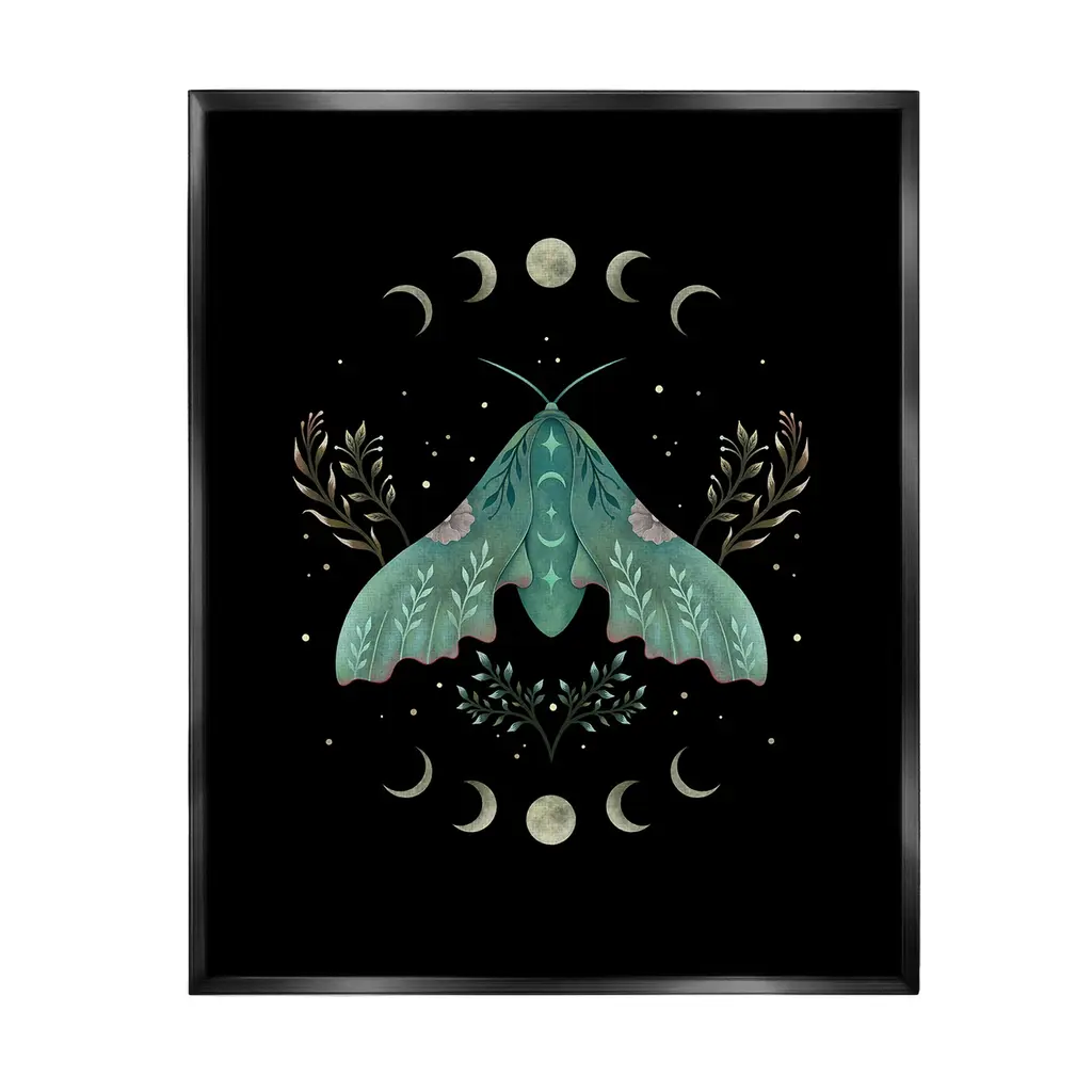 Add dimension to any room with our textured Framed Giclee Artwork. Our framed artwork is securely mounted into a 1.5-inch thick wood grain frame and ready to hang. Frames are available in three alluring styles: black, gray farmhouse and white. In addition, you should check out our oversized options if you want a statement piece. Stupell Wall Art is made in the USA.Features: Dimensions: 11 x 1.5 x 14 FramedFramed Giclee Products are available in the sizes 11"x14", 16"x20" or 24"x30". All Framed Giclee Products have a 1.5" Depth. Wall Art is Ready to Hang with Hardware Free Hanging. No installation required. For Easy Set Up Lean or Layer Artwork on Shelf or Against Wall.Our giclée prints are carefully mounted on a durable MDF backing, and then perfectly finished in a 1.5 inch thick woodgrain frame. Mounted frame colors include black, gray farmhouse and white. Made In USA.Artwork Relates To: Plant, Animal, Butterfly, Insect, Invertebrate, Astronomy, Moon, Nature, Night, Moth, Pattern, Astral, Celestial, Flower, FloralDesign by Episodic Drawings
