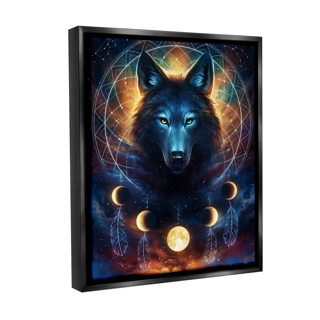Elevate your home or office to the next level with Stupell Framed Floating Canvas Wall Art. Our premium hand-stretched canvas is mounted securely into a sturdy lightweight frame. The museum-style gap between the wrapped canvas and the box frame gives the illusion of floating artwork. Stupell Wall Art is made in the USA.Features: Dimensions: 17 x 1.7 x 21 Frame, 16 x 1.5 x 20 Canvas ArtFloating Frame Canvas Products are available in sizes 17"x21" and 25"x31". All Floating Frame Canvas Products have a 1.7" Depth.Wall Art is Ready to Hang with Hardware Free Hanging. No Installation required. For Easy Set Up Lean or Layer Artwork on Shelf or Against Wall. Artwork is Permently Fixed into the Frame.Our elevated 1.7" Thick Floating Frame is the perfect complement to our canvas style Wall Art. We use only the highest quality inks in house with industry leading printing solutions. Canvas is hand stretched over a durable wood foundation and then mounted securly into a Modern Box Frame. Made in the USA.Artwork Relates To: Nature, Night, Animal, Mammal, Wolf, Canine, Dog, Astronomy, Moon, Astral, Celestial, Feather, Pattern, Geometric, LunarDesign by Jonas Jodicke