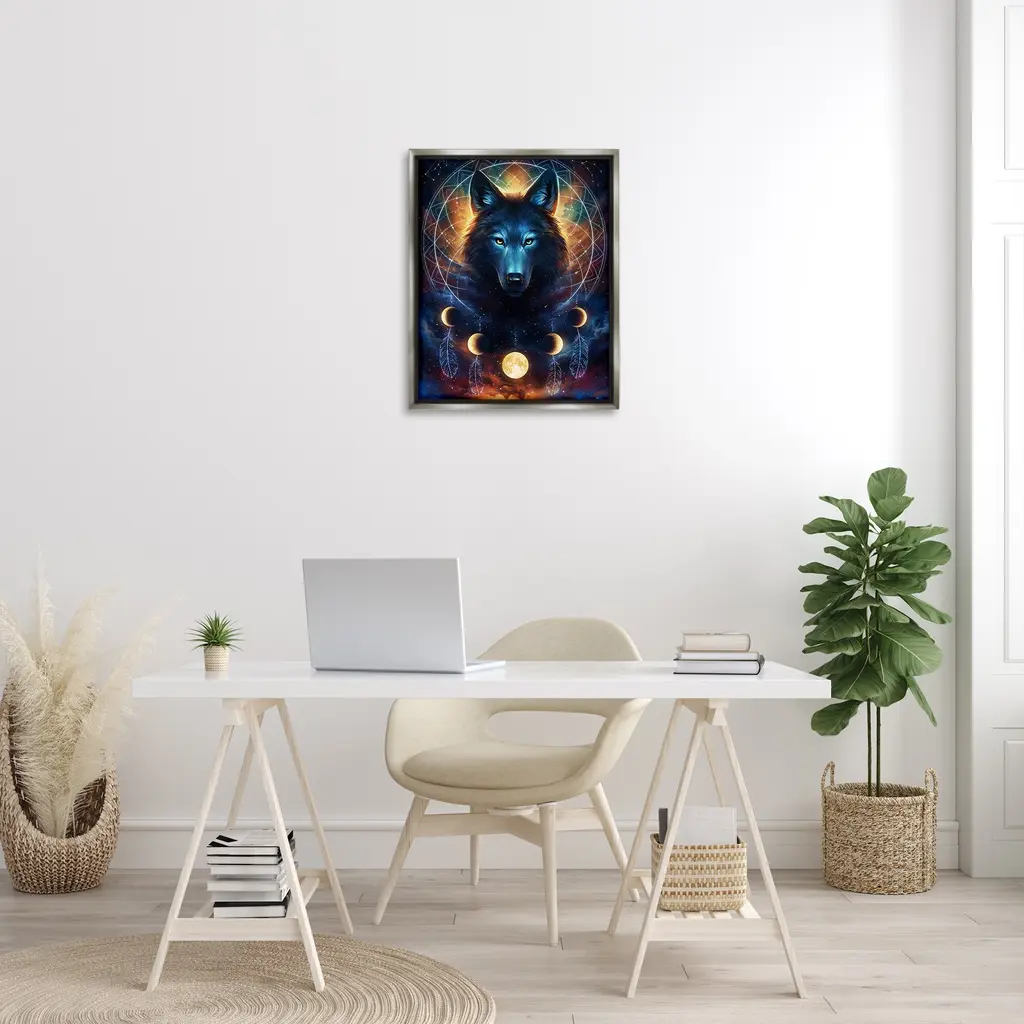Elevate your home or office to the next level with Stupell Framed Floating Canvas Wall Art. Our premium hand-stretched canvas is mounted securely into a sturdy lightweight frame. The museum-style gap between the wrapped canvas and the box frame gives the illusion of floating artwork. Stupell Wall Art is made in the USA.Features: Dimensions: 17 x 1.7 x 21 Frame, 16 x 1.5 x 20 Canvas ArtFloating Frame Canvas Products are available in sizes 17"x21" and 25"x31". All Floating Frame Canvas Products have a 1.7" Depth.Wall Art is Ready to Hang with Hardware Free Hanging. No Installation required. For Easy Set Up Lean or Layer Artwork on Shelf or Against Wall. Artwork is Permently Fixed into the Frame.Our elevated 1.7" Thick Floating Frame is the perfect complement to our canvas style Wall Art. We use only the highest quality inks in house with industry leading printing solutions. Canvas is hand stretched over a durable wood foundation and then mounted securly into a Modern Box Frame. Made in the USA.Artwork Relates To: Nature, Night, Animal, Mammal, Wolf, Canine, Dog, Astronomy, Moon, Astral, Celestial, Feather, Pattern, Geometric, LunarDesign by Jonas Jodicke