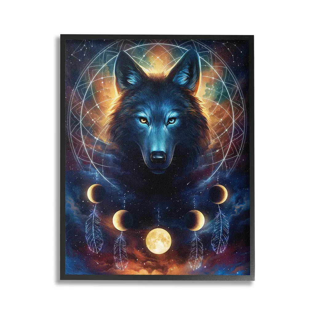 Add dimension to any room with our textured Framed Giclee Artwork. Our framed artwork is securely mounted into a 1.5-inch thick wood grain frame and ready to hang. Frames are available in three alluring styles: black, gray farmhouse and white. In addition, you should check out our oversized options if you want a statement piece. Stupell Wall Art is made in the USA.Features: Dimensions: 11 x 1.5 x 14 FramedFramed Giclee Products are available in the sizes 11"x14", 16"x20" or 24"x30". All Framed Giclee Products have a 1.5" Depth. Wall Art is Ready to Hang with Hardware Free Hanging. No installation required. For Easy Set Up Lean or Layer Artwork on Shelf or Against Wall.Our giclée prints are carefully mounted on a durable MDF backing, and then perfectly finished in a 1.5 inch thick woodgrain frame. Mounted frame colors include black, gray farmhouse and white. Made In USA.Artwork Relates To: Nature, Night, Animal, Mammal, Wolf, Canine, Dog, Astronomy, Moon, Astral, Celestial, Feather, Pattern, Geometric, LunarDesign by Jonas Jodicke
