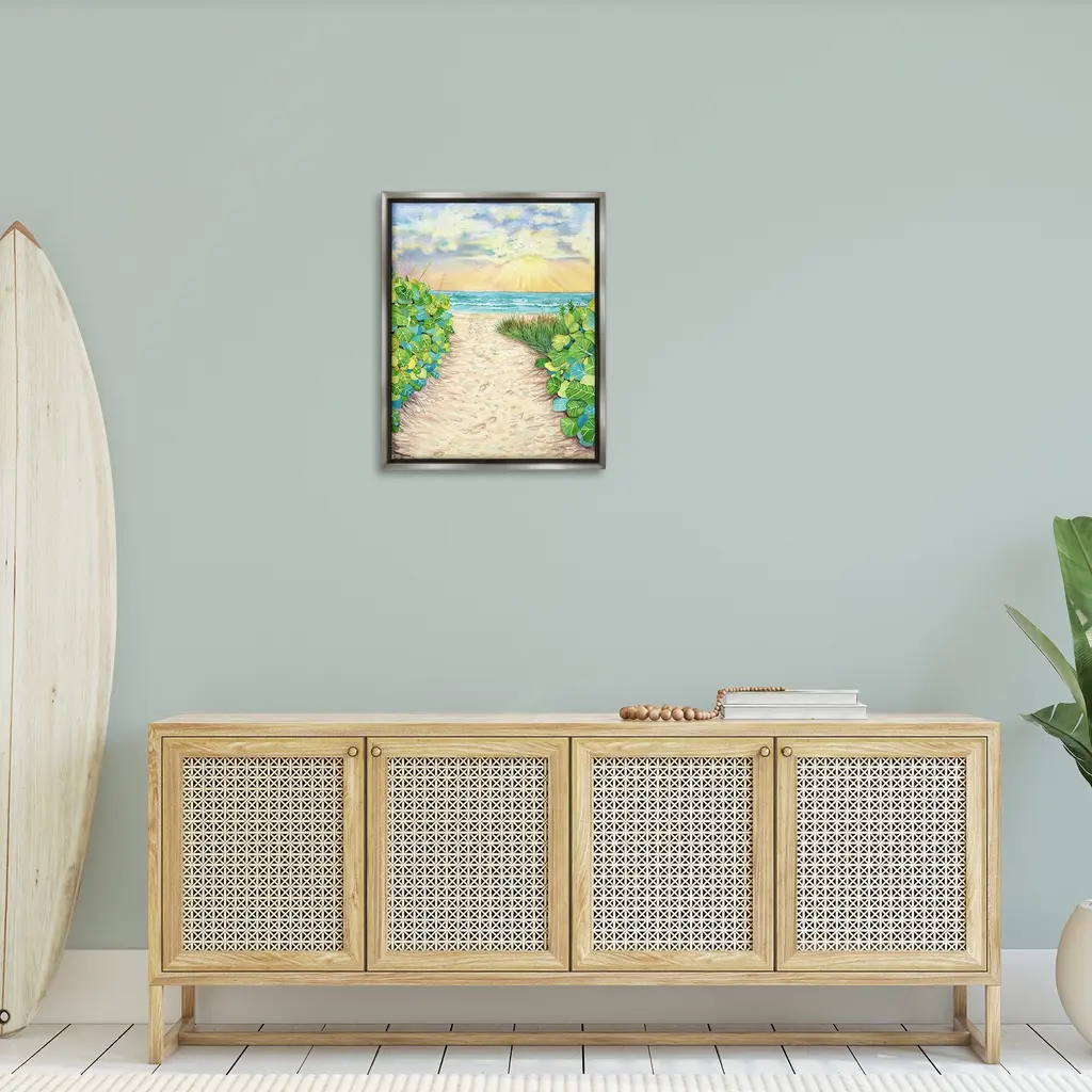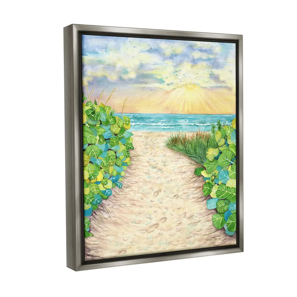 Elevate your home or office to the next level with Stupell Framed Floating Canvas Wall Art. Our premium hand-stretched canvas is mounted securely into a sturdy lightweight frame. The museum-style gap between the wrapped canvas and the box frame gives the illusion of floating artwork. Stupell Wall Art is made in the USA.Features: Dimensions: 17 x 1.7 x 21 Frame, 16 x 1.5 x 20 Canvas ArtFloating Frame Canvas Products are available in sizes 17"x21" and 25"x31". All Floating Frame Canvas Products have a 1.7" Depth.Wall Art is Ready to Hang with Hardware Free Hanging. No Installation required. For Easy Set Up Lean or Layer Artwork on Shelf or Against Wall. Artwork is Permently Fixed into the Frame.Our elevated 1.7" Thick Floating Frame is the perfect complement to our canvas style Wall Art. We use only the highest quality inks in house with industry leading printing solutions. Canvas is hand stretched over a durable wood foundation and then mounted securly into a Modern Box Frame. Made in the USA.Artwork Relates To: Sky, Horizon, Sea, Water, Beach, Coast, Shoreline, Scenery, Sea Waves, Summer, Plant, BotanicalDesign by Christine Reichow