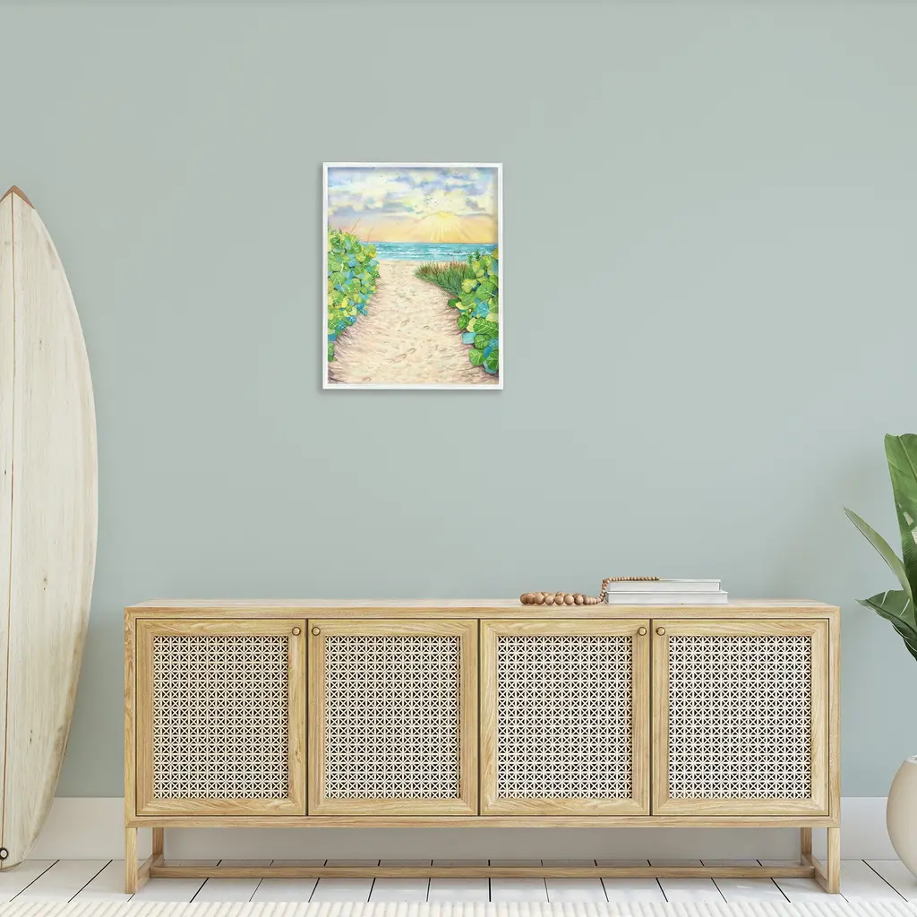Add dimension to any room with our textured Framed Giclee Artwork. Our framed artwork is securely mounted into a 1.5-inch thick wood grain frame and ready to hang. Frames are available in three alluring styles: black, gray farmhouse and white. In addition, you should check out our oversized options if you want a statement piece. Stupell Wall Art is made in the USA.Features: Dimensions: 11 x 1.5 x 14 FramedFramed Giclee Products are available in the sizes 11"x14", 16"x20" or 24"x30". All Framed Giclee Products have a 1.5" Depth. Wall Art is Ready to Hang with Hardware Free Hanging. No installation required. For Easy Set Up Lean or Layer Artwork on Shelf or Against Wall.Our giclée prints are carefully mounted on a durable MDF backing, and then perfectly finished in a 1.5 inch thick woodgrain frame. Mounted frame colors include black, gray farmhouse and white. Made In USA.Artwork Relates To: Sky, Horizon, Sea, Water, Beach, Coast, Shoreline, Scenery, Sea Waves, Summer, Plant, BotanicalDesign by Christine Reichow