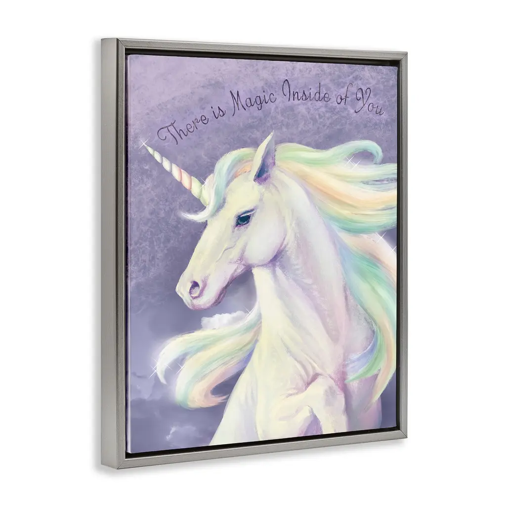 Stupell Magic Inside Of You Inspirational Unicorn Framed Floater Canvas Wall Art Design By Ziwei Li - 25 X 31 - Grey