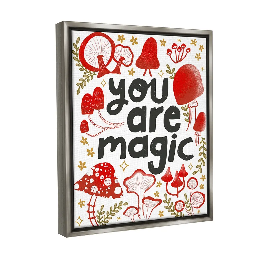 Stupell Magic Phrase With Mushrooms Framed Floater Canvas Wall Art Design By Glad You're Here Co. - 17 X 21 - Grey