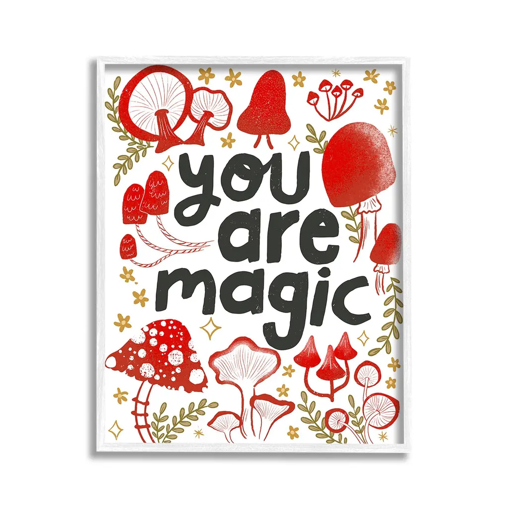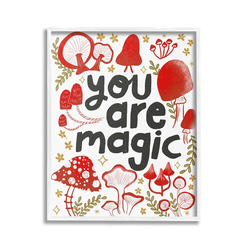 Elevate your home or office to the next level with Stupell Framed Floating Canvas Wall Art. Our premium hand-stretched canvas is mounted securely into a sturdy lightweight frame. The museum-style gap between the wrapped canvas and the box frame gives the illusion of floating artwork. Stupell Wall Art is made in the USA.Features: Dimensions: 17 x 1.7 x 21 Frame, 16 x 1.5 x 20 Canvas ArtFloating Frame Canvas Products are available in sizes 17"x21" and 25"x31". All Floating Frame Canvas Products have a 1.7" Depth.Wall Art is Ready to Hang with Hardware Free Hanging. No Installation required. For Easy Set Up Lean or Layer Artwork on Shelf or Against Wall. Artwork is Permently Fixed into the Frame.Our elevated 1.7" Thick Floating Frame is the perfect complement to our canvas style Wall Art. We use only the highest quality inks in house with industry leading printing solutions. Canvas is hand stretched over a durable wood foundation and then mounted securly into a Modern Box Frame. Made in the USA.Artwork Relates To: Nature, Plant, Botanical, Pattern, Woodland, Fungus, Mushroom, Agaric, You are MagicDesign by Glad You're Here Co.