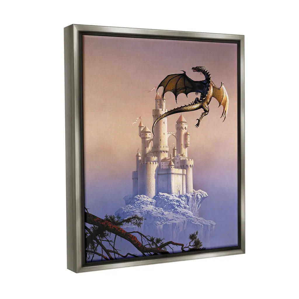 Elevate your home or office to the next level with Stupell Framed Floating Canvas Wall Art. Our premium hand-stretched canvas is mounted securely into a sturdy lightweight frame. The museum-style gap between the wrapped canvas and the box frame gives the illusion of floating artwork. Stupell Wall Art is made in the USA.Features: Dimensions: 17 x 1.7 x 21 Frame, 16 x 1.5 x 20 Canvas ArtFloating Frame Canvas Products are available in sizes 17"x21" and 25"x31". All Floating Frame Canvas Products have a 1.7" Depth.Wall Art is Ready to Hang with Hardware Free Hanging. No Installation required. For Easy Set Up Lean or Layer Artwork on Shelf or Against Wall. Artwork is Permently Fixed into the Frame.Our elevated 1.7" Thick Floating Frame is the perfect complement to our canvas style Wall Art. We use only the highest quality inks in house with industry leading printing solutions. Canvas is hand stretched over a durable wood foundation and then mounted securly into a Modern Box Frame. Made in the USA.Artwork Relates To: Dragon, Architecture, Building, Castle, Fortress, Animal, Reptile, Landscape, Surreal, Fantasy, Magical, Tree, BranchDesign by Ciruelo