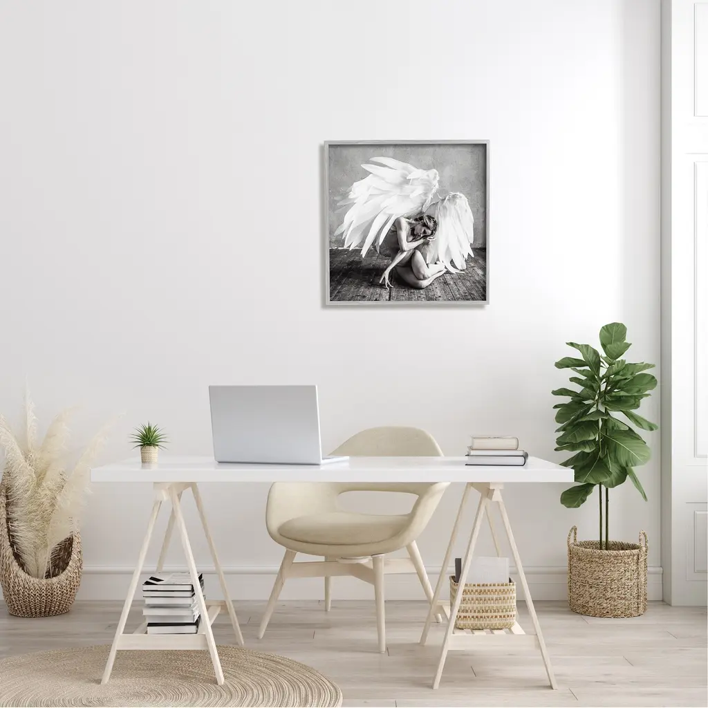 Stupell Magical White Angel Wings Woman Monochrome Photography Framed Wall Art - Grey - 24 X 24 - Grey