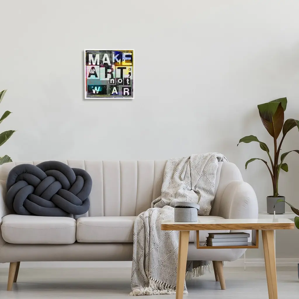 Stupell Make Art Not War Quirky Modern Typography Letters Framed Wall Art - Grey - 12 X 12 - White