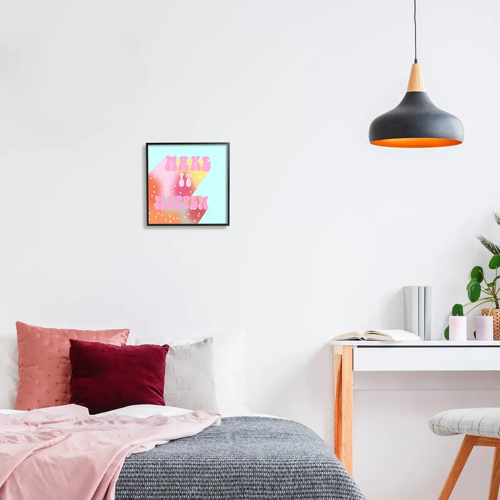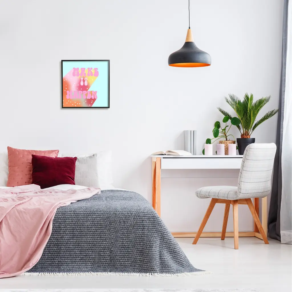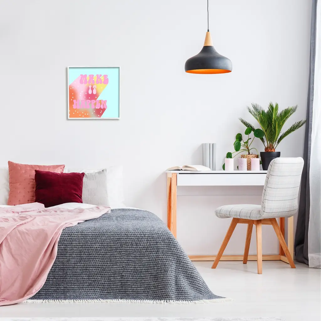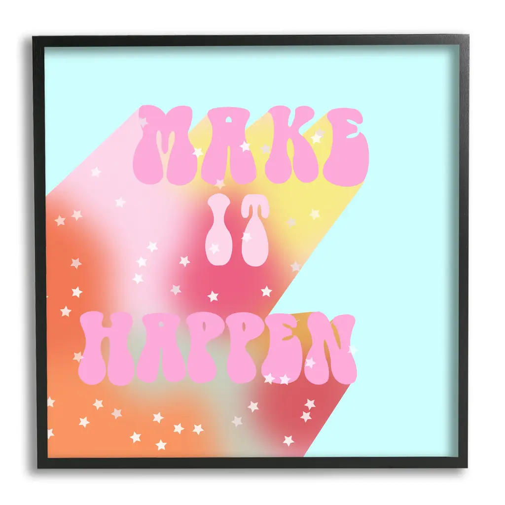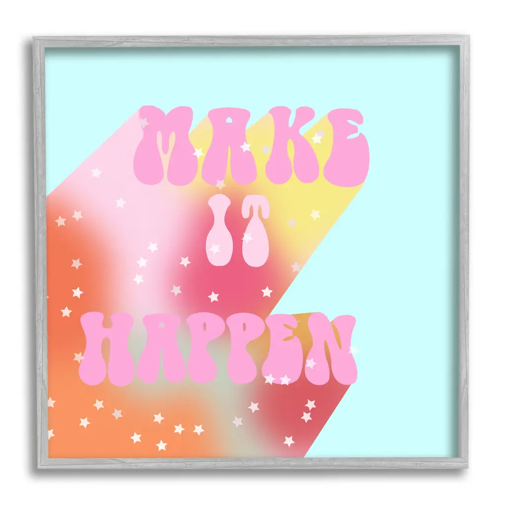 Add dimension to any room with our textured Framed Giclee Artwork. Our framed artwork is securely mounted into a 1.5-inch thick wood grain frame and ready to hang. Frames are available in three alluring styles: black, gray farmhouse and white. In addition, you should check out our oversized options if you want a statement piece. Stupell Wall Art is made in the USA.Features: Dimensions: 12 x 1.5 x 12 FramedFramed Giclee Sizes Include Standard: 12 x 1.5 x 12 Large: 17 x 1.5 x 17 Oversized: 24 x 1.5 x 24Wall Art is Ready to Hang - No Installation or Hardware Needed. For Easy Set Up Lean or Layer Artwork on Shelf or Against Wall.Our giclée prints are carefully mounted on a durable MDF backing, and then perfectly finished in a 1.5 inch thick woodgrain frame. Mounted frame colors include black, gray farmhouse and white. Made In USA.Artwork Relates To: Motivational, Inspirational, Phrase, Stars, Make It HappenDesign by Ashley Singleton