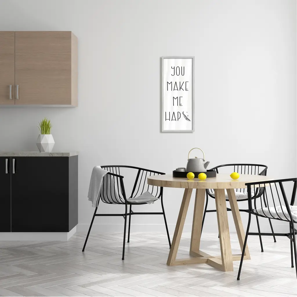 Stupell Make Me Hap-Pea Punny Romance Kitchen Phrase Framed Wall Art, Design By Daphne Polselli - 10 X 24 - Grey