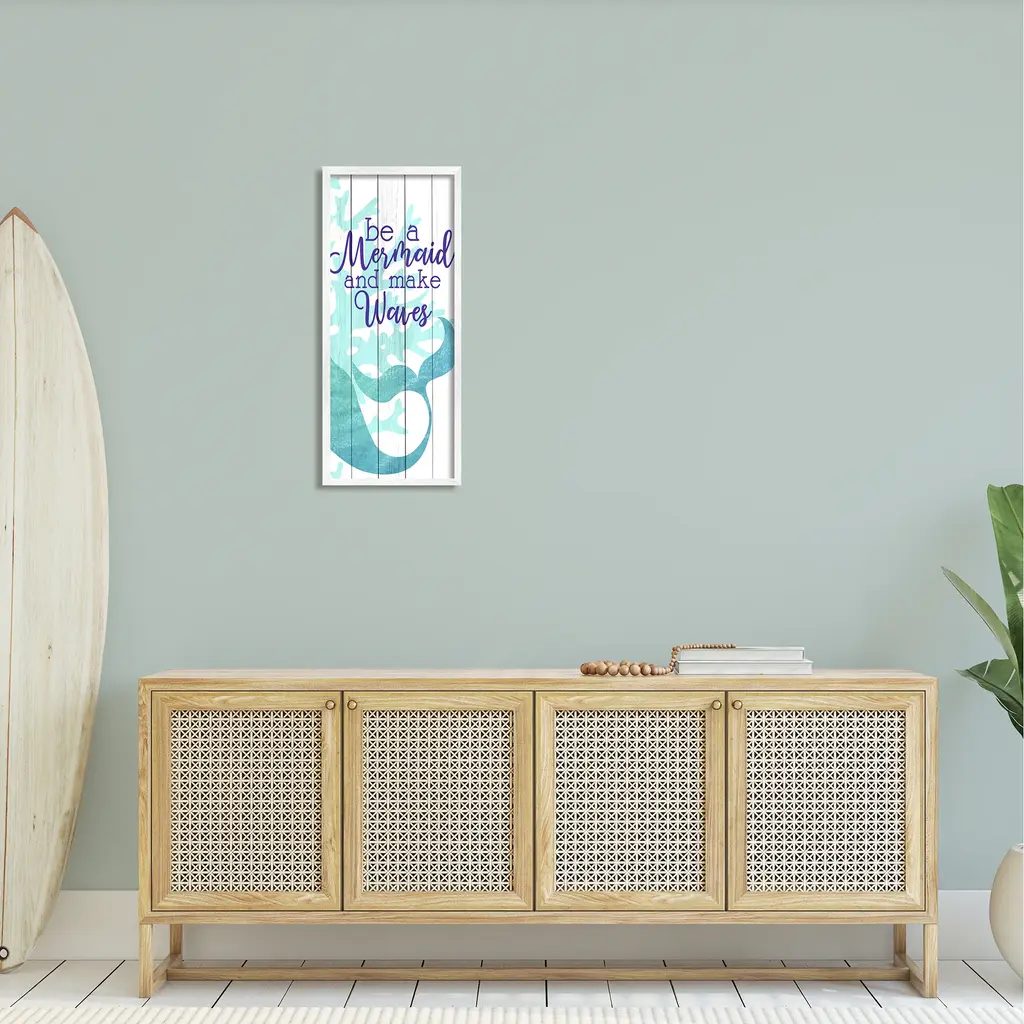Stupell Make Waves Mermaid Saying Calligraphy Turquoise Tail Framed Wall Art - Green - 13 X 30 - White