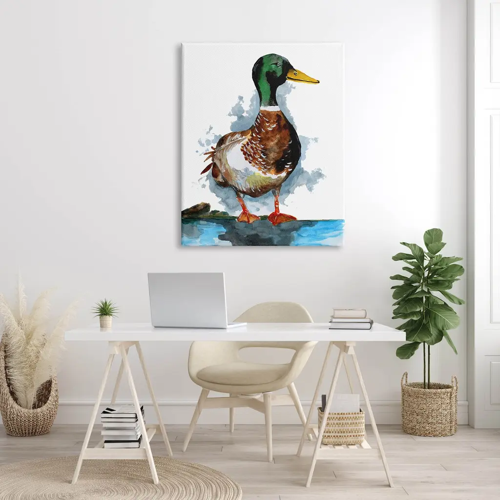 Proudly made in the USA, Our stretched canvas is created with the highest standards. We use only the highest quality inks and canvas on our in house Mimaki printers, and then hand cut and stretch each piece over a 1.5 inch thick wooden frame for hanging. The art comes ready to hang with no installation required.Features: Dimensions: 16 x 1.5 x 20 InchesStretched Canvas Sizes Include Standard: 16 x 1.5 x 20 Large: 20 x 1.5 x 30 X-Large: 30 x 1.5 x 40 Oversized: 36 x 1.5 x 48Wall Art is Ready to Hang - No Installation or Hardware Needed. For Easy Set Up Lean or Layer Artwork on Shelf or Against Wall.Our stretched canvas is created with the highest standards. We use only the highest quality inks and canvas on our in house Mimaki printers, and then hand cut and stretch each piece over a 1.5 inch thick wooden frame for hanging. Made In USA.Artwork Relates To: Bird, Animal, Duck, Mallard, Water, Lake, PondDesign by Sebastian Grafmann