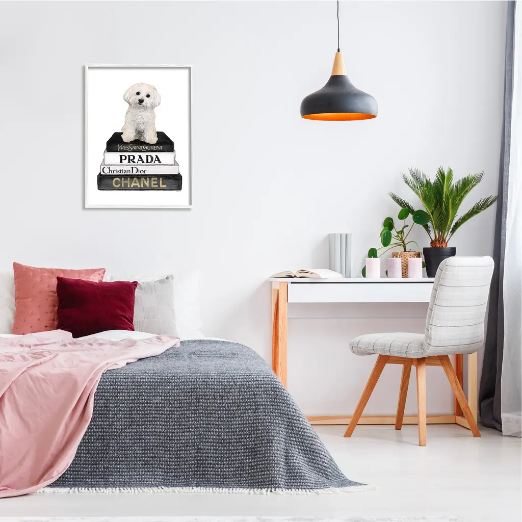 Stupell Maltese Dog Glam Pet Fashion Bookstack Framed Wall Art, Design By Amanda Greenwood - White - 24 X 30 - White