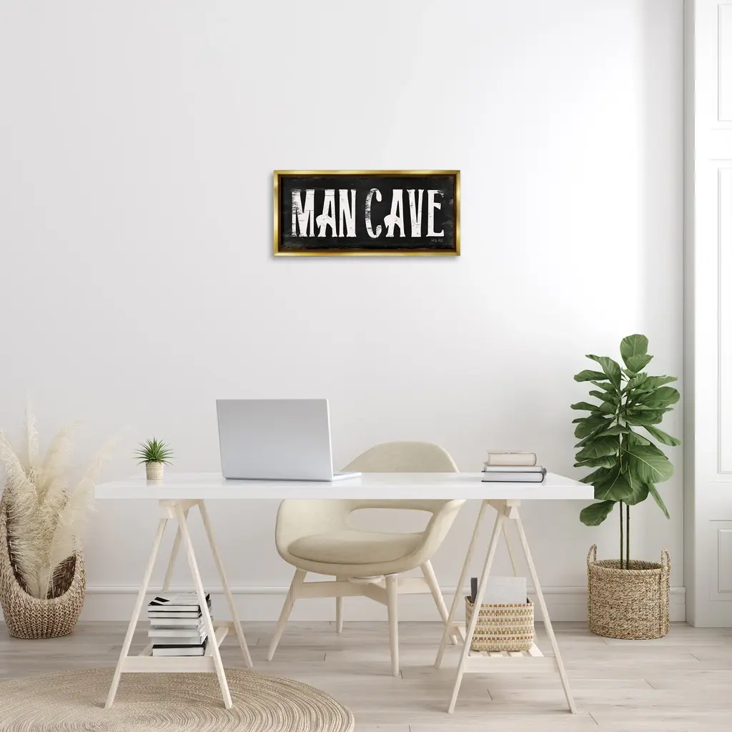 Stupell Man Cave Black And White Framed Floater Canvas Wall Art Design By Cindy Jacobs - 25 X 11 - Gold