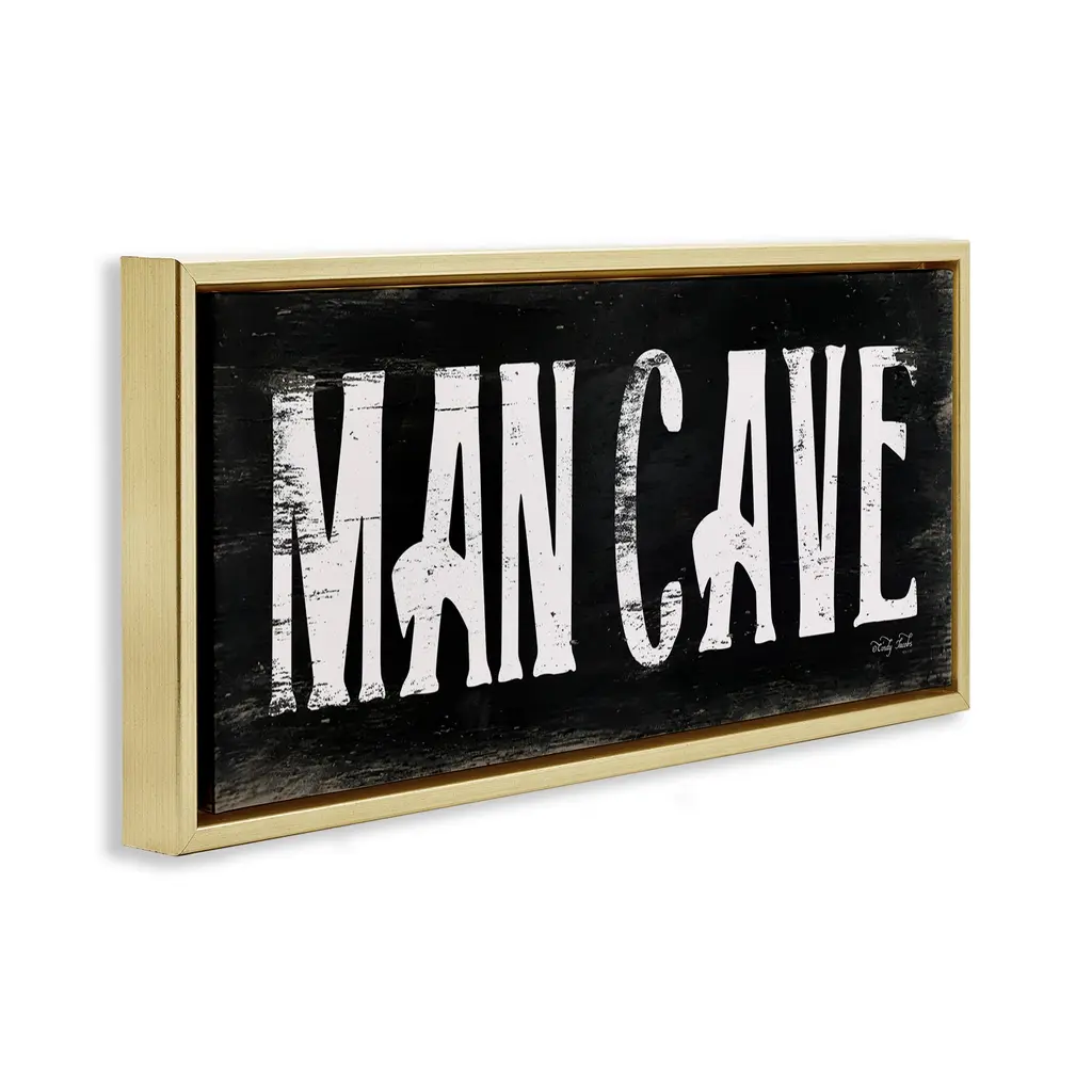 Stupell Man Cave Black And White Framed Floater Canvas Wall Art Design By Cindy Jacobs - 31 X 14 - Gold