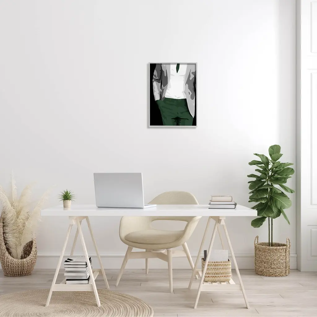 Our Framed Giclee Wall Art adds a touch of class to any space in your home or office. Frames are available in three alluring styles: black, gray farmhouse and white. Our textured artwork will add more depth and dimension to any space. Each piece is mounted with a 1.5 inch thick wood grain frame that is ready to hang! Looking for a statement piece? We have oversized artwork available.Features:Dimensions: 11 x 1.5 x 14 FramedFramed Giclee Sizes IncludeStandard: 11 x 1.5 x 14Large: 16 x 1.5 x 20Oversized: 24 x 1.5 x 30Wall Art is Ready to Hang - No Installation or Hardware Needed. For Easy Set Up Lean or Layer Artwork on Shelf or Against Wall.Our giclee prints are carefully mounted on a durable MDF backing, and then perfectly finished in a 1.5 inch thick woodgrain frame. Mounted frame colors include black, gray farmhouse and white. Made In USA.Artwork Relates To: Man; Adult; Male; Person, SuitDesign by Beth Ann Lawson