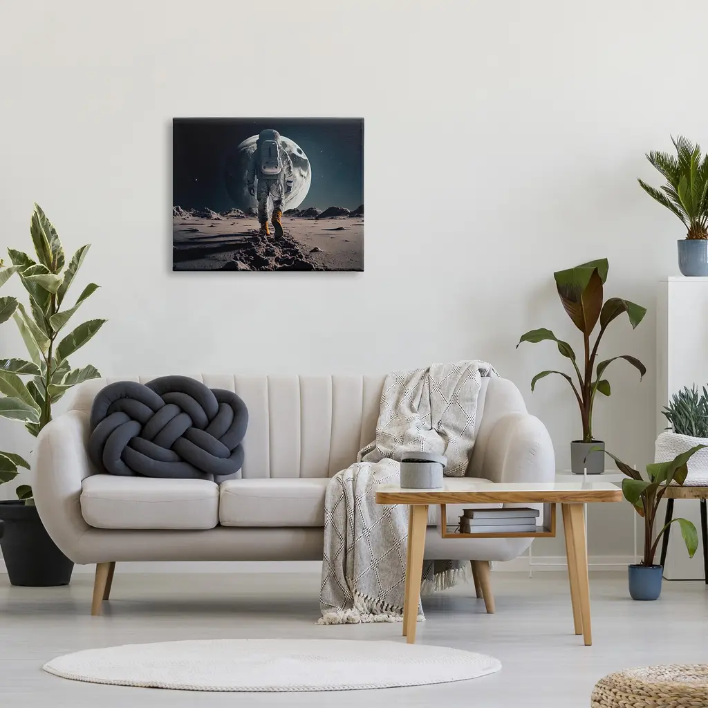 We create our stretched canvas to the highest standards. Using only the highest quality inks and canvas on Mimaki printers, we hand-cut and stretch each piece over a 1.5-inch thick wooden frame for hanging. As a result, the art comes ready to hang on the sturdy ledge with no installation required. Stupell Wall Art is made in the USA.Features: Dimensions: 20 x 1.5 x 16 InchesStretched Canvas Sizes Include Standard: 20 x 1.5 x 16 Large: 30 x 1.5 x 20 X-Large: 40 x 1.5 x 30 Oversized: 48 x 1.5 x 36Wall Art is Ready to Hang - No Installation or Hardware Needed. For Easy Set Up Lean or Layer Artwork on Shelf or Against Wall.Our stretched canvas is created with the highest standards. We use only the highest quality inks and canvas on our in house Mimaki printers, and then hand cut and stretch each piece over a 1.5 inch thick wooden frame for hanging. Made In USA.Artwork Relates To: Astronomy, Moon, Person, Outer Space, Astronaut, Planet, EarthDesign by CyberGeek Design