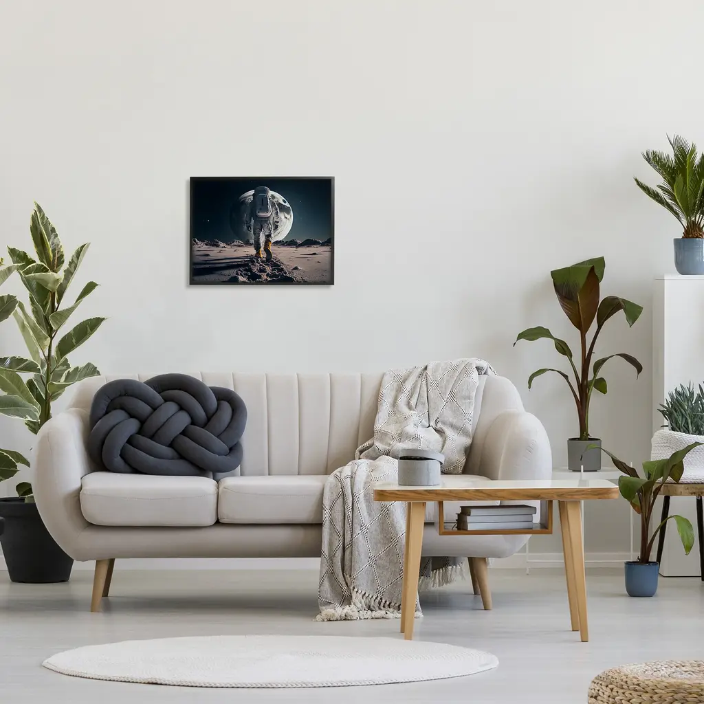 Add dimension to any room with our textured Framed Giclee Artwork. Our framed artwork is securely mounted into a 1.5-inch thick wood grain frame and ready to hang. Frames are available in three alluring styles: black, gray farmhouse and white. In addition, you should check out our oversized options if you want a statement piece. Stupell Wall Art is made in the USA.Features: Dimensions: 14 x 1.5 x 11 FramedFramed Giclee Sizes Include Standard: 14 x 1.5 x 11 Large: 20 x 1.5 x 16 Oversized: 30 x 1.5 x 24Wall Art is Ready to Hang - No Installation or Hardware Needed. For Easy Set Up Lean or Layer Artwork on Shelf or Against Wall.Our giclée prints are carefully mounted on a durable MDF backing, and then perfectly finished in a 1.5 inch thick woodgrain frame. Mounted frame colors include black, gray farmhouse and white. Made In USA.Artwork Relates To: Astronomy, Moon, Person, Outer Space, Astronaut, Planet, EarthDesign by CyberGeek Design