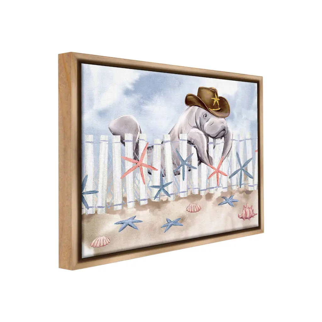Elevate your home or office to the next level with Stupell Framed Floating Canvas Wall Art. Our premium hand-stretched canvas is mounted securely into a sturdy lightweight frame. The museum-style gap between the wrapped canvas and the box frame gives the illusion of floating artwork. Stupell Wall Art is made in the USA.Features: Dimensions: 21 x 1.7 x 17 Frame, 20 x 1.5 x 16 Canvas ArtFloating Frame Canvas Products are available in sizes 21"x17" and 31"x25". All Floating Frame Canvas Products have a 1.7" Depth.Wall Art is Ready to Hang with Hardware Free Hanging. No Installation required. For Easy Set Up Lean or Layer Artwork on Shelf or Against Wall. Artwork is Permently Fixed into the Frame.Our elevated 1.7" Thick Floating Frame is the perfect complement to our canvas style Wall Art. We use only the highest quality inks in house with industry leading printing solutions. Canvas is hand stretched over a durable wood foundation and then mounted securly into a Modern Box Frame. Made in the USA.Artwork Relates To: Fence, Animal, Sea Life, Cowboy Hat, Nautical, Starfish, Manatee, BeachDesign by Ziwei Li