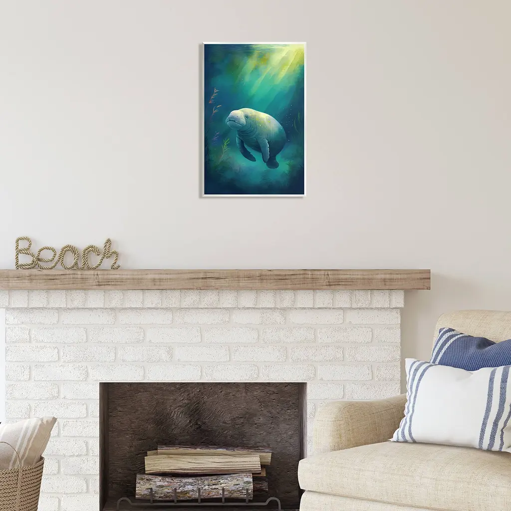 Our wall plaques start as high-quality lithograph prints mounted on durable 0.5-inch thick MDF wood. Each piece is hand finished and comes with a fresh layer of white foil on the sides to give it a crisp, clean look. Plaques arrive ready to hang without installation and come with removable plastic corners to keep them from damage in transit. Stupell Industries Wall Art is made in the USA.Features: Dimensions: 10 x 0.5 x 15 InchesWall Plaque Sizes Include Standard: 10 x 0.5 x 15 Oversized: 13 x 0.5 x 19Wall Art is Ready to Hang with Hardware Free Hanging. No installation required. For Easy Set Up Lean or Layer Artwork on Shelf or Against Wall.All of our wall plaques start off as high quality lithograph prints that are then mounted on durable 0.5 inch thick MDF wood. Each piece is hand finished and comes with a fresh layer of foil on the sides to give it a crisp clean look. Made In USA.Artwork Relates To: Animal, Wildlife, Manatee, Fish, Sea Life, Aquatic, Water, UnderwaterDesign by Enrico McGarrigle