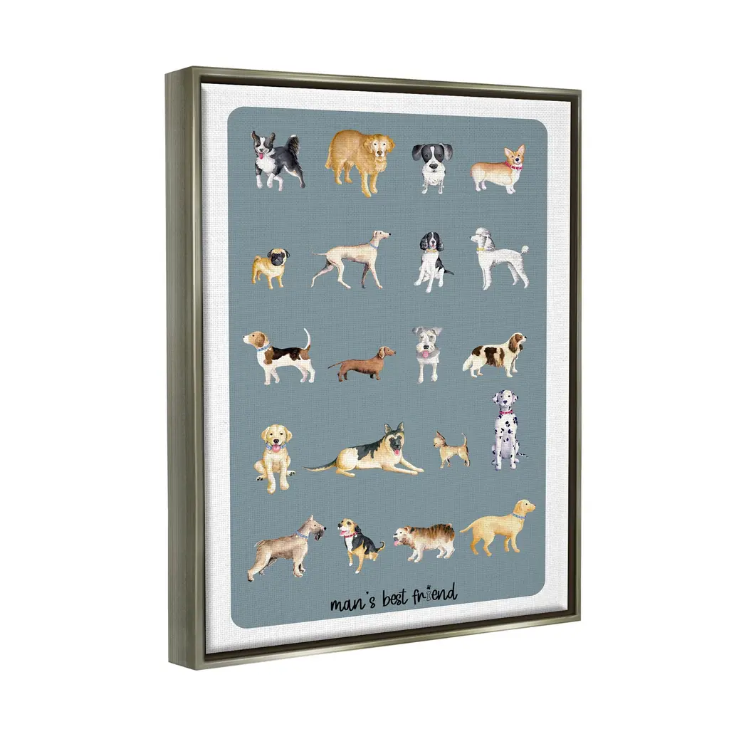 Stupell Man's Best Friend Dog Breeds Floater Canvas Wall Art By Andi Metz - 17 X 21 - Grey