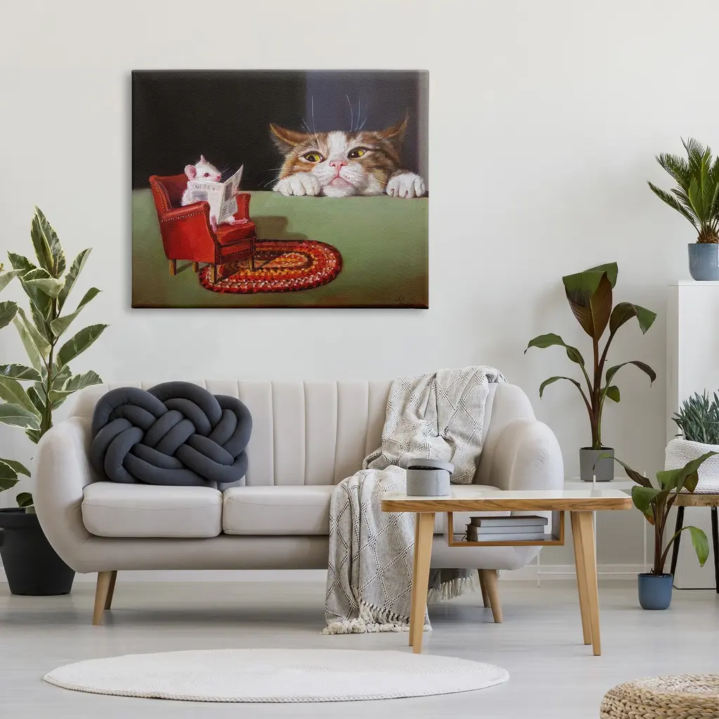 Stupell Manx Cat Watching Mouse Canvas Wall Art Design By Lucia Heffernan - 48 X 36