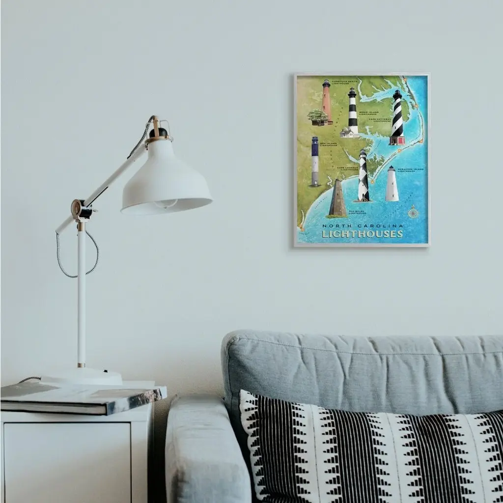 Stupell Map Of Lighthouses In North Carolina Coastal Design Framed Wall Art - Multi-Color - 16 X 20 - Grey