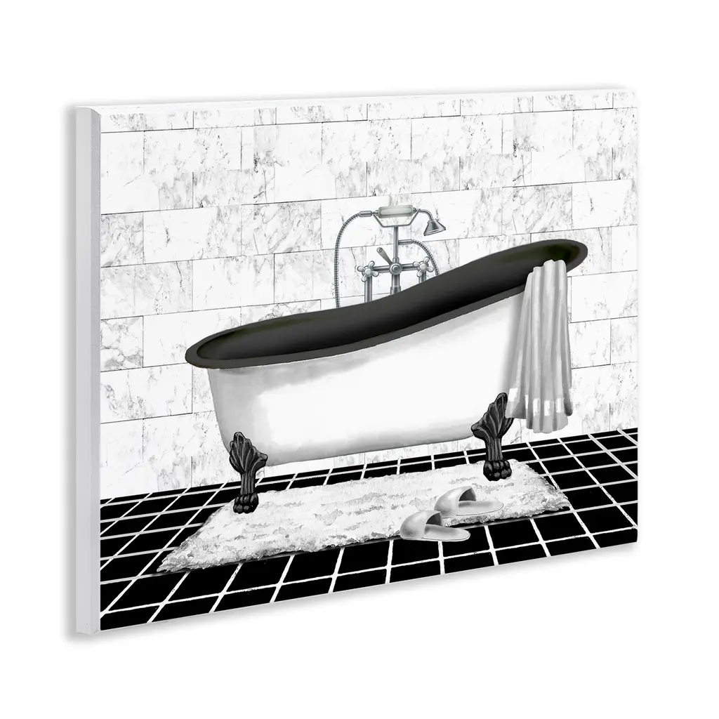 Our wall plaques start as high-quality lithograph prints mounted on durable 0.5-inch thick MDF wood. Each piece is hand finished and comes with a fresh layer of white foil on the sides to give it a crisp, clean look. Plaques arrive ready to hang without installation and come with removable plastic corners to keep them from damage in transit. Stupell Wall Art is made in the USA.Features: Dimensions: 14 x 0.5 x 11 InchesWall Art is Ready to Hang with Hardware Free Hanging. No installation required. For Easy Set Up Lean or Layer Artwork on Shelf or Against Wall.All of our wall plaques start off as high quality lithograph prints that are then mounted on durable 0.5 inch thick MDF wood. Each piece is hand finished and comes with a fresh layer of foil on the sides to give it a crisp clean look. Made In USA.Artwork Relates To: Bathing, Bathtub, Tub, Bathroom, MinimalDesign by Conrad Knutsen