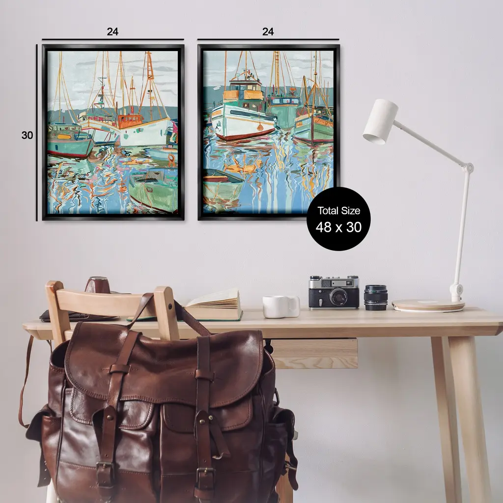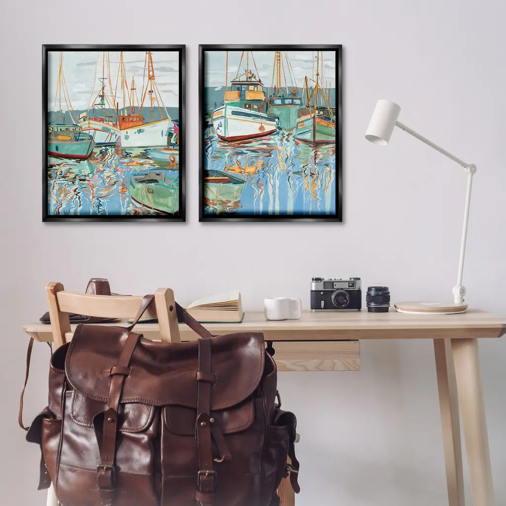 Elevate your home or office to the next level with Stupell Framed Floating Canvas Wall Art. Our premium hand-stretched canvas is mounted securely into a sturdy lightweight frame. The museum-style gap between the wrapped canvas and the box frame gives the illusion of floating artwork. Stupell Wall Art is made in the USA.Features: Dimensions: 2 Piece Set, Each Frame is 17 x 1.7 x 21Two Piece Floater Framed Canvas are available as 17x21 or 25x31 Panels. All Floater Frame Products have a 1.7" Depth.Wall Art is Ready to Hang with Hardware Free Hanging. No Installation required. For Easy Set Up Lean or Layer Artwork on Shelf or Against Wall. Artwork is Permently Fixed into the Frame.Our elevated 1.7" Thick Floating Frame is the perfect complement to our canvas style Wall Art. We use only the highest quality inks in house with industry leading printing solutions. Canvas is hand stretched over a durable wood foundation and then mounted securly into a Modern Box Frame. Made in the USA.Artwork Relates To: Boat, Water, Waterfront, Dinghy, Watercraft, Beach, Lake, Ocean, Coastal, Nautical, Abstract, Modern, MaritimeDesign by Melissa Wang