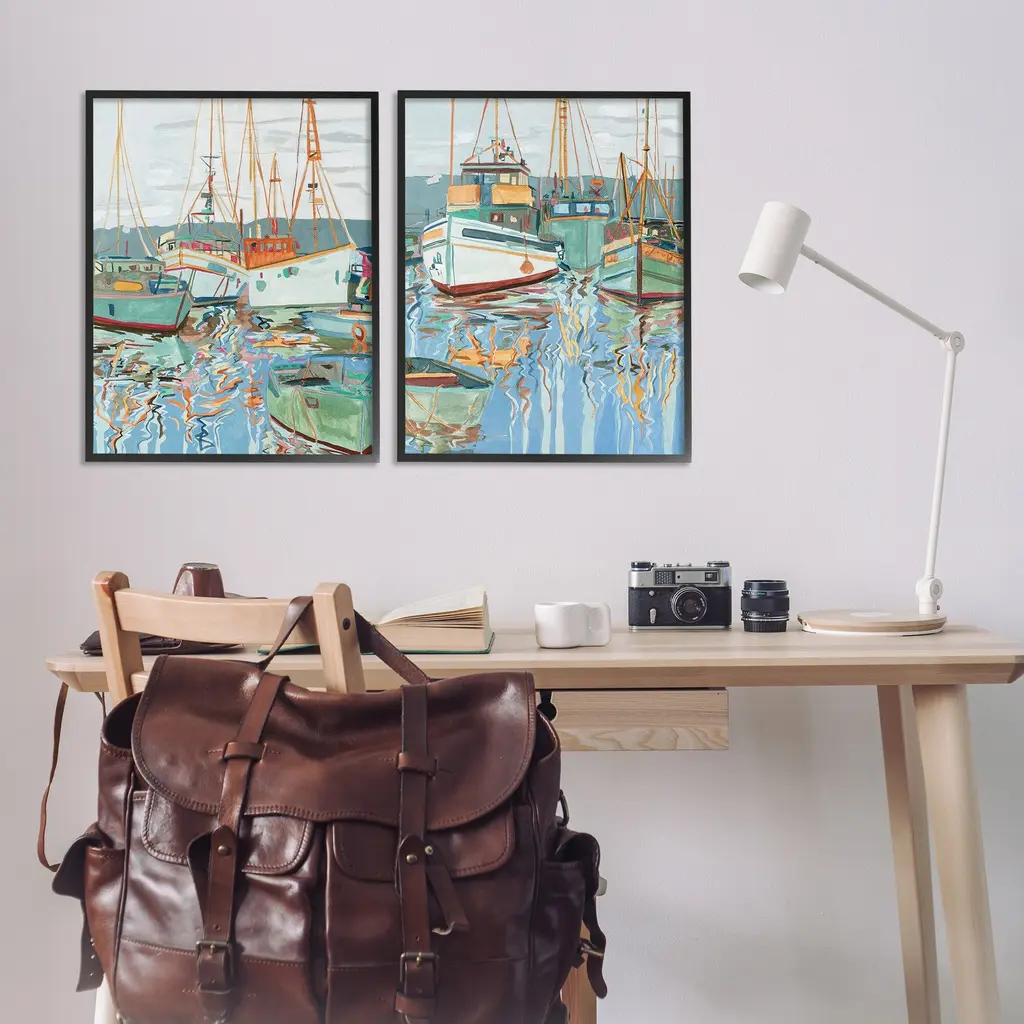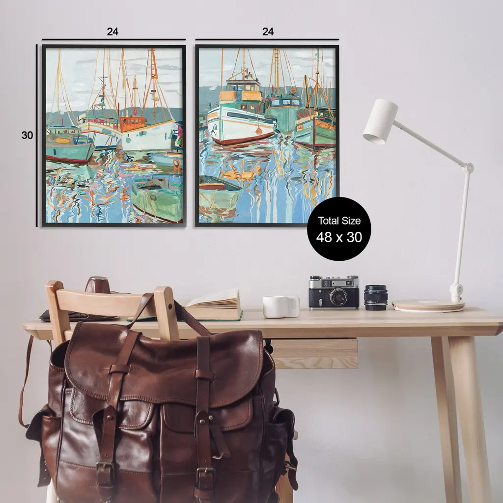 Fill any space in your home or office with our Framed Wall Art Sets. Our framed artwork is securely mounted into a 1.5-inch thick wood grain frame and ready to hang. Frames are available in three alluring styles: black, gray farmhouse and white. Stupell Wall Art is made in the USA.Features: Dimensions: 2 Piece Set, Each Panel is 11 x 1.5 x 14 FramedTwo Piece Framed Giclee Sets are available as 11"x14", 16"x20" or 24"x30" Panels. All Framed Giclee Products have a 1.5" Depth.Wall Art is Ready to Hang with Hardware Free Hanging. No installation required. For Easy Set Up Lean or Layer Artwork on Shelf or Against Wall.Curated Wall Art Sets make it easy for you complete the theme for any room. Our giclée prints are carefully mounted on a durable MDF backing, and then perfectly finished in a 1.5 inch thick woodgrain frame. Mounted frame colors include black, gray farmhouse and white. Made In USA.Artwork Relates To: Boat, Water, Waterfront, Dinghy, Watercraft, Beach, Lake, Ocean, Coastal, Nautical, Abstract, Modern, MaritimeDesign by Melissa Wang